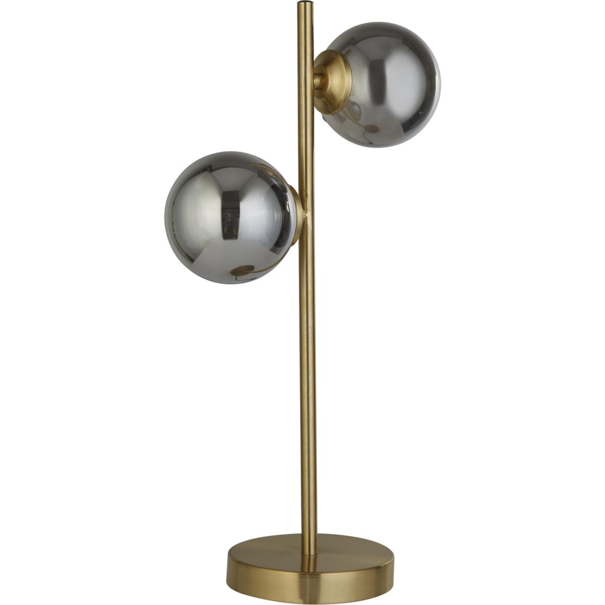Add a touch of retro elegance to your space with this 2 light multi head table lamp. Featurning a brass frame with smoke glass shades, this table lamp will fit seamlessly into any home space. Display on its own or as a set with the matching pieces available.