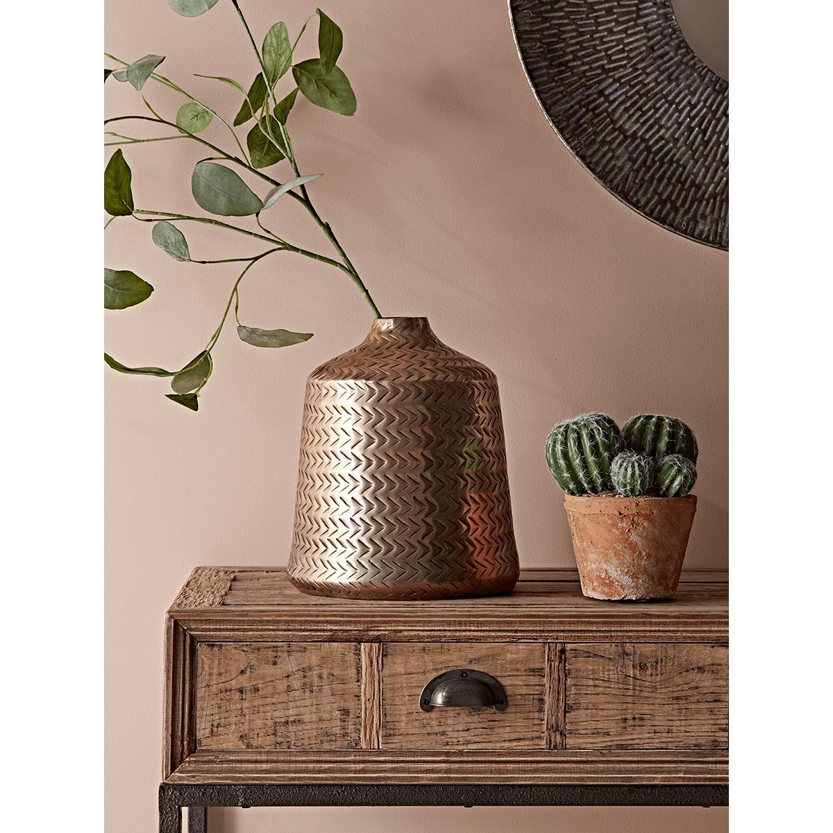 I love this brass chevron vase for its bold geometric pattern and warm metallic tone, which makes it versatile for various interior styles. It works particularly well in modern, industrial, or boho settings, where its statement quality can be showcased. For practical styling, consider pairing it with fresh or dried floral arrangements, or even leaving it empty as a sculptural piece on a sideboard or console table. Its compact size makes it ideal for smaller vignettes, but it can also serve as a focal point on larger shelves or mantels. To enhance its effect, combine it with other brass or textured objects for a cohesive look.