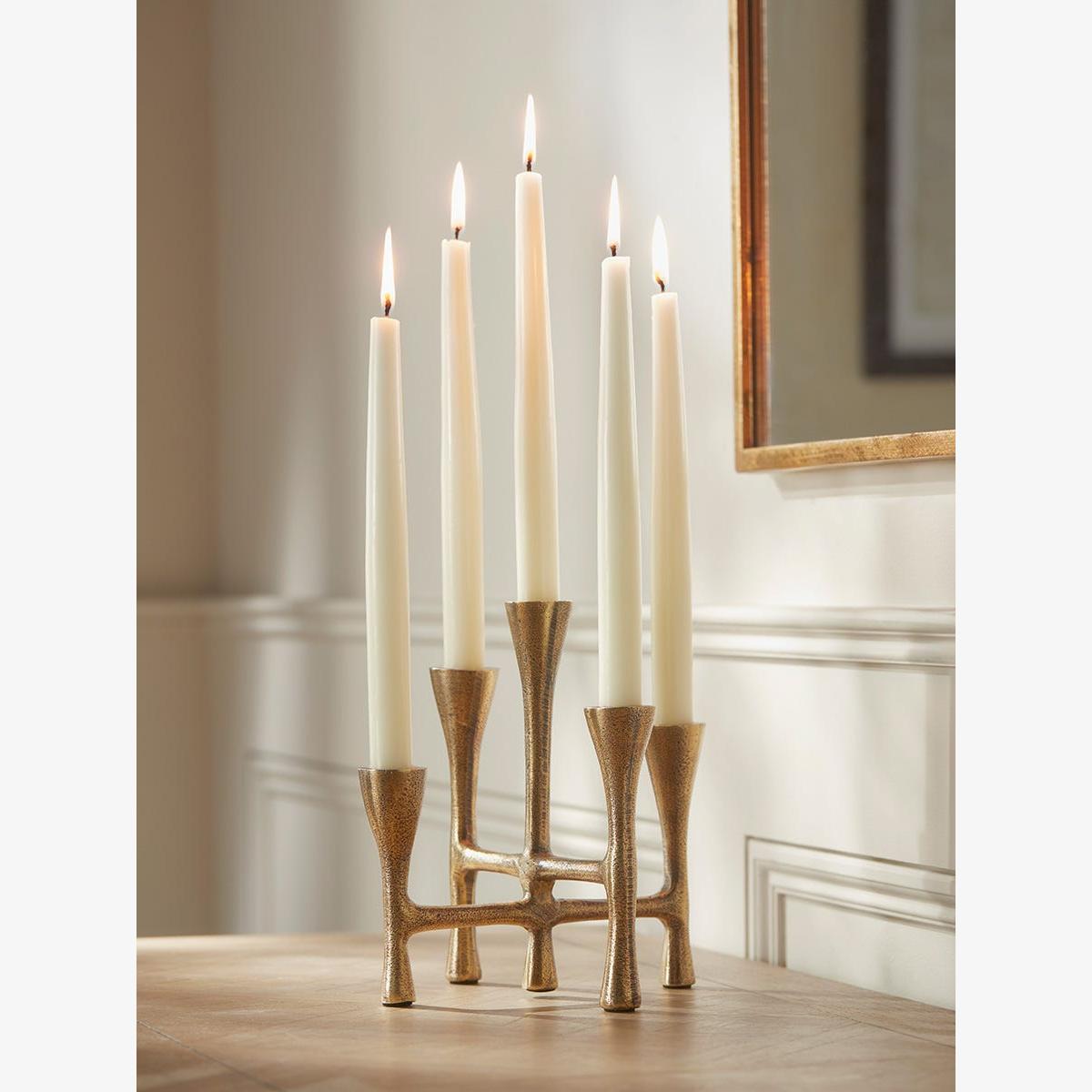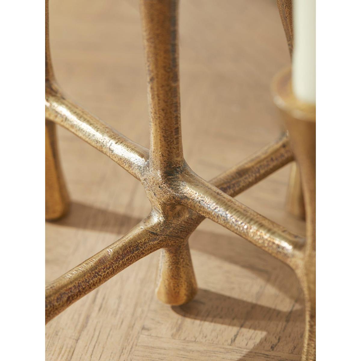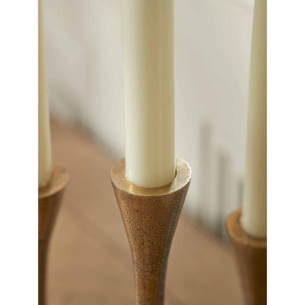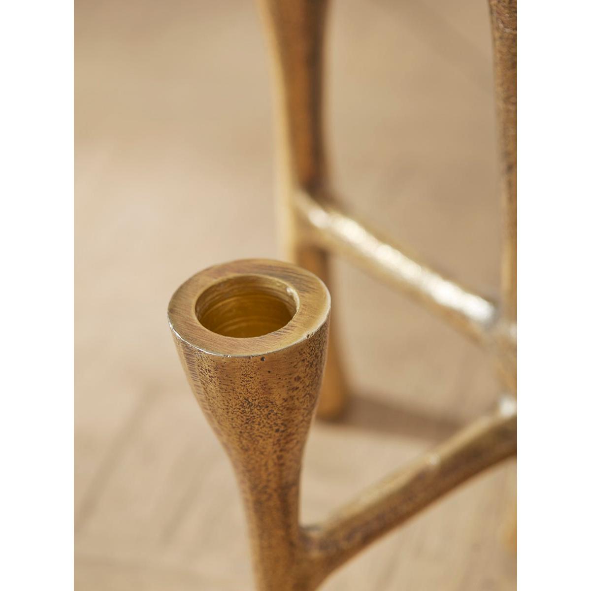 With an organic sculptural quality, this quirky candelabra will add some stylish character to your home. Perfect for the centre of the dining table when paired with tall dinner candles, the aluminium piece has a warm brass-coloured finish which will glow beautifully beneath candlelight.