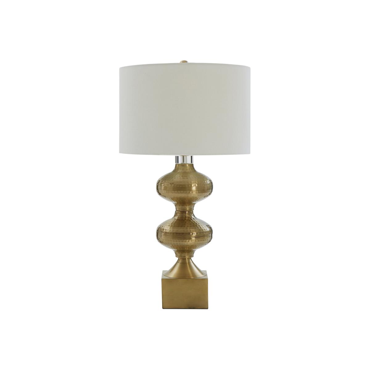 The Carly table lamp features a brass finish metal base with square cuboid stand, with a stepped design and hammered effect. The white fabric shade helps to diffuse light, creating a subtle ambience. Bulb not included. Bulb Required: E27 60WDimensions:. H 80 x W 44cm. This product will be dispatched by one of our trusted suppliers. You’ll be contacted by their selected courier about your delivery.