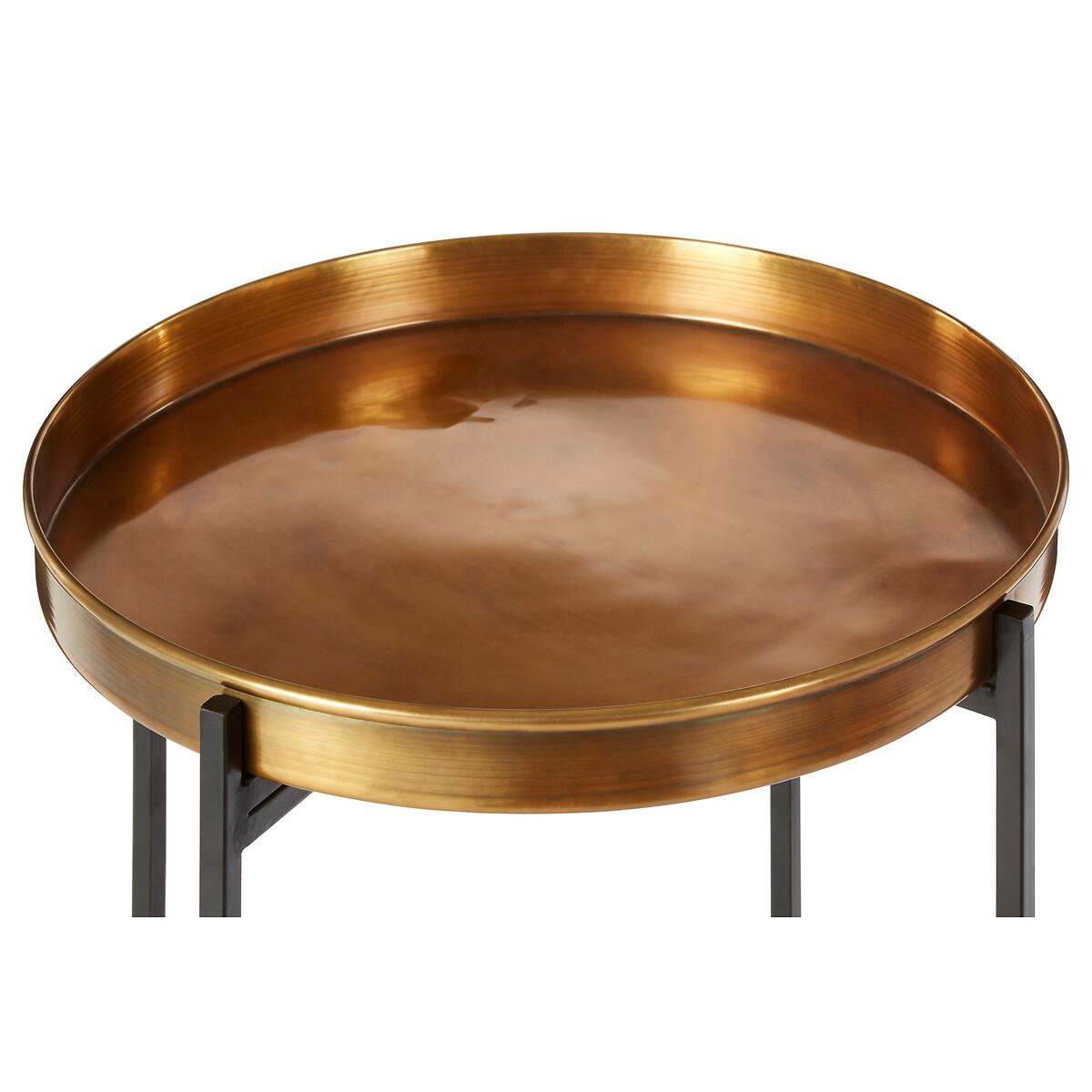 This side table has a round metal top with slightly raised sides, and a brass finish that adds a warm metallic accent to interiors. The top is perched on slim metal legs with a black colour that complements the brass. Requires Assembly. Product Dimensions: 47cmx47cmx55cm Please remember to measure your available space before ordering. Packaged Dimensions: 58cmx 53cmx 10cm Weight: 4kg. This product will be dispatched by one of our trusted suppliers. You’ll be contacted by their selected courier about your delivery.