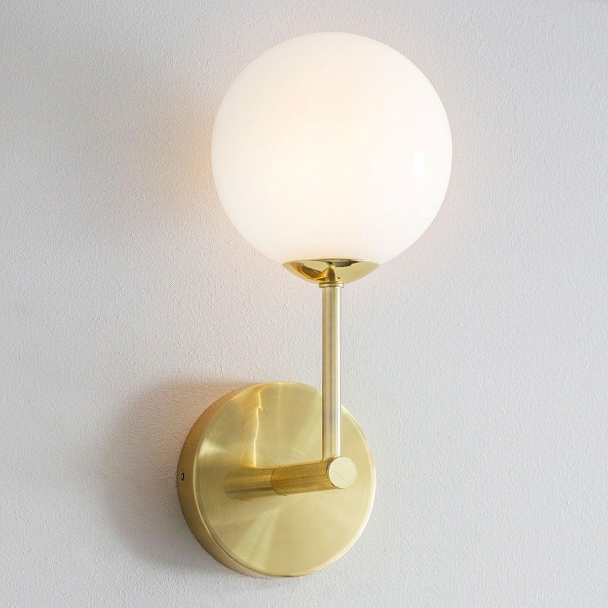 Design. The Brass Globe Wall Light is super versatile and would look fabulous in both traditional and. Modern. Homes. Featuring a white glass globed shade against. The. Brass. Fitting with a brushed gold finish, this light is a classic piece that. Will. Elegantly brighten up your home.