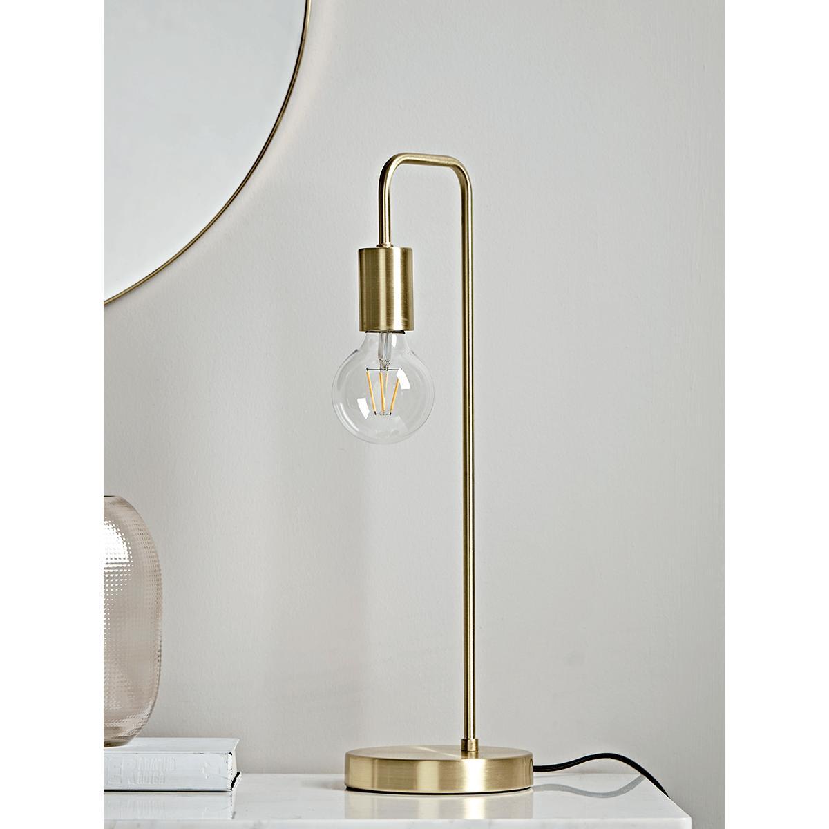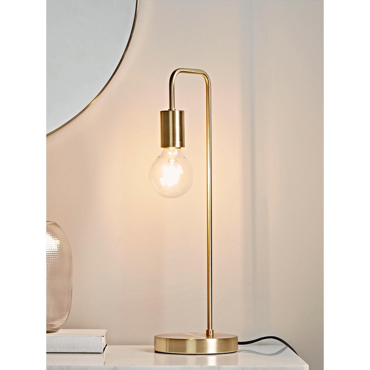 I love this lamp for its sleek, minimalist design that works beautifully in modern and contemporary interiors. Its brass finish adds a touch of warmth and sophistication, making it versatile enough to sit on a desk, sideboard, or bedside table. It pairs well with both neutral palettes and richer tones, adding a subtle luxe feel. Practical styling tips include placing it where task lighting is needed, such as near a reading nook or workspace, and pairing it with other brass or metallic accents for a cohesive look. Its open bulb design invites a vintage-inspired aesthetic but keeps the overall look clean and current.