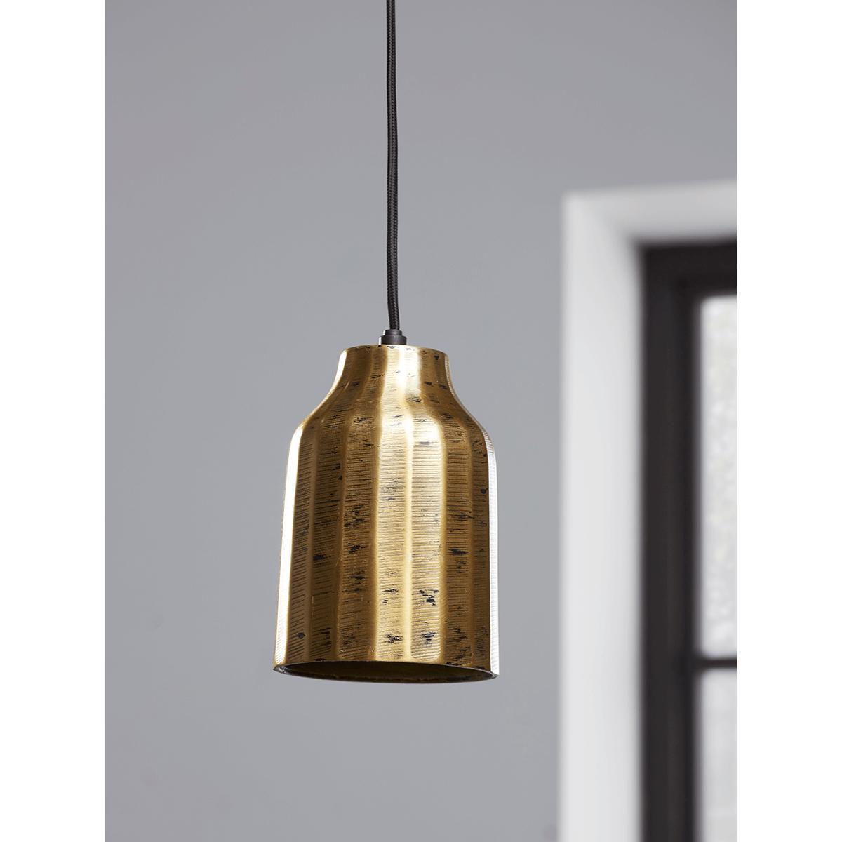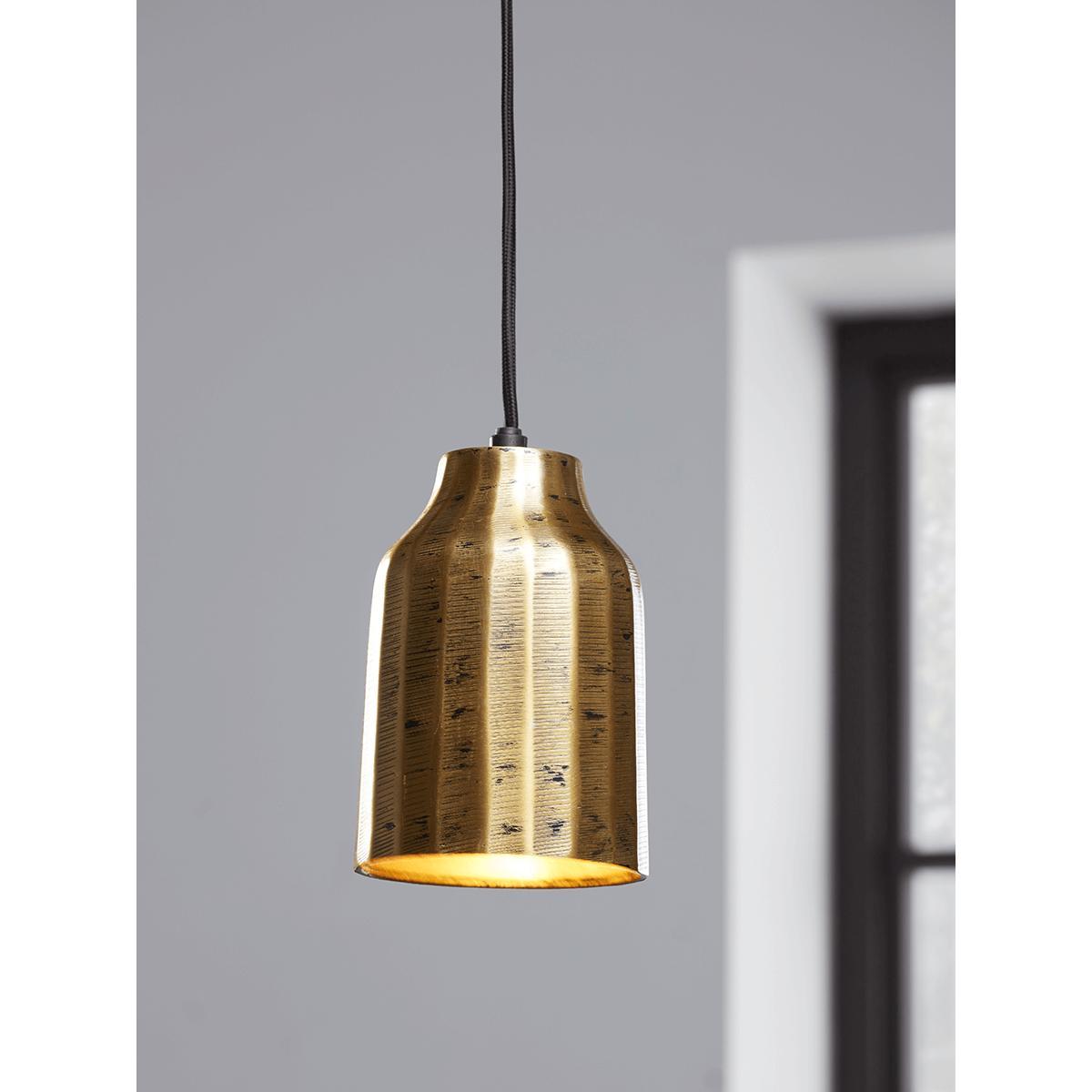 With its corded fabric flex and etched marked metal finish our Brass Tapered Pendant will add a subtle industrial touch to any space. The perfect pendant to hang bedside, as a pair in the kitchen or hallway.