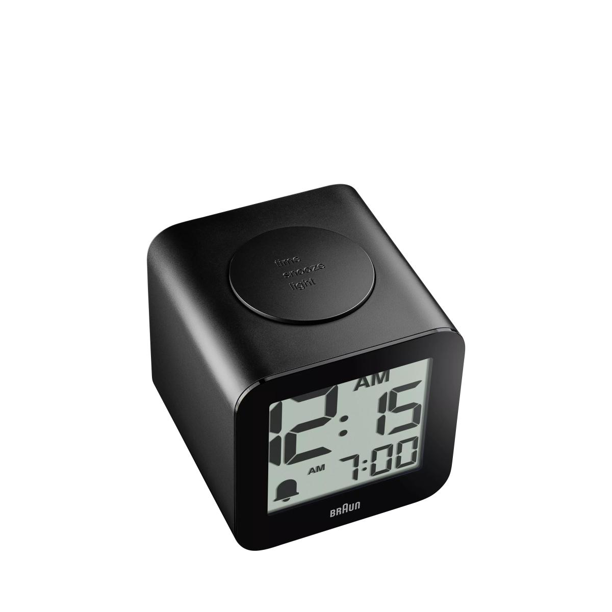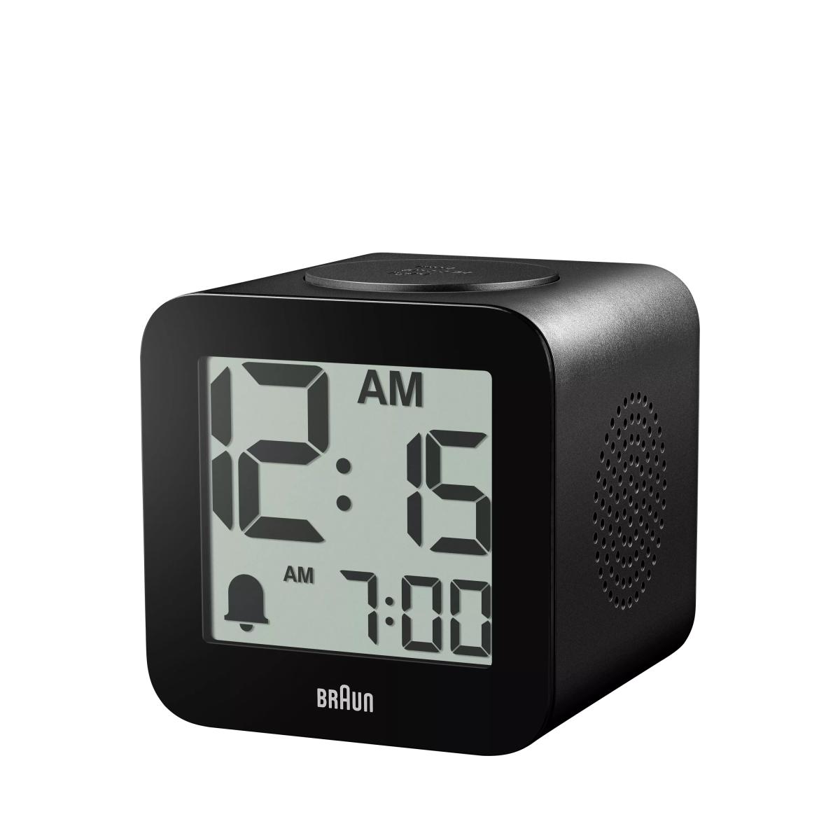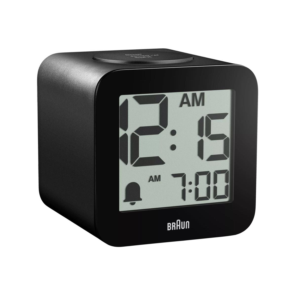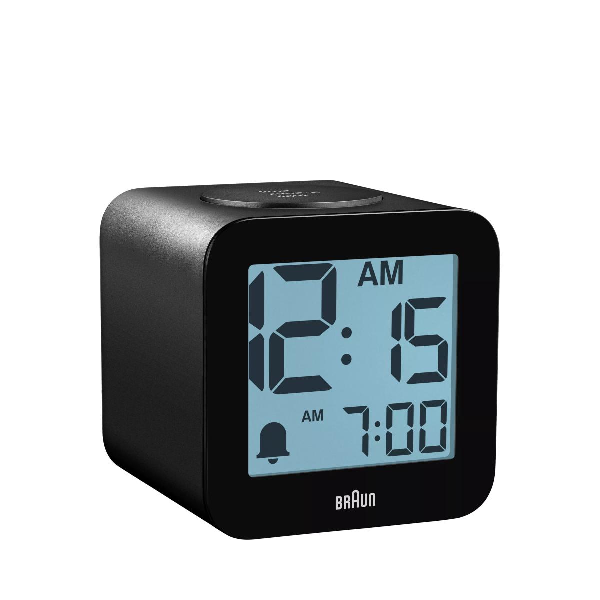 This Braun digital alarm clock features a positive LCD display with large digits and speaks the time. Speaking Clock — Spoken time announcements at the press of a button and automatically at the beginning of every hour. Easy setting with spoken feedback. Automatic announcements can be disabled. Languages: English, German. Crescendo beep alarm — The beep alarm gets more frequent and louder if you do not turn it off. Snooze / backlight function — Snooze interval is 5 minutes. Light illuminates for 10 seconds once manually activated. Positive LCD display with 12-hour display — the digital display may vary in contrast depending on room lighting. Battery Efficiency — This clock requires 3 x AA batteries to operate. Batteries not included. For optimal performance in timekeeping, backlight and alarm functions, use only new alkaline batteries. Key features:Positive LCD display Speaking clock function Crescendo beep alarm Integrated snooze/backlight function Snooze interval is 5 minutes Backlight illuminates for 10 seconds once manually activated 12-hour display Model BC25B. P