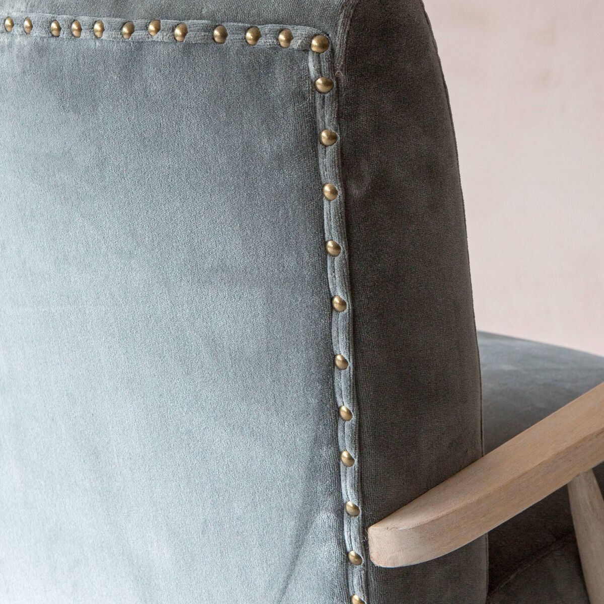 I love this armchair for its sleek, muted grey velvet, which makes it versatile enough for both contemporary and vintage interiors. It works particularly well in living rooms or reading nooks that need a pop of colour without overwhelming the space. Styling tips include pairing it with textured cushions or a patterned throw to add visual interest, or placing it next to a small side table for a cosy, functional corner. Its wooden frame brings a touch of warmth, making it suitable for neutral palettes or even more colourful, eclectic schemes. This piece is both stylish and practical, adding comfort and a refined touch to your interior.