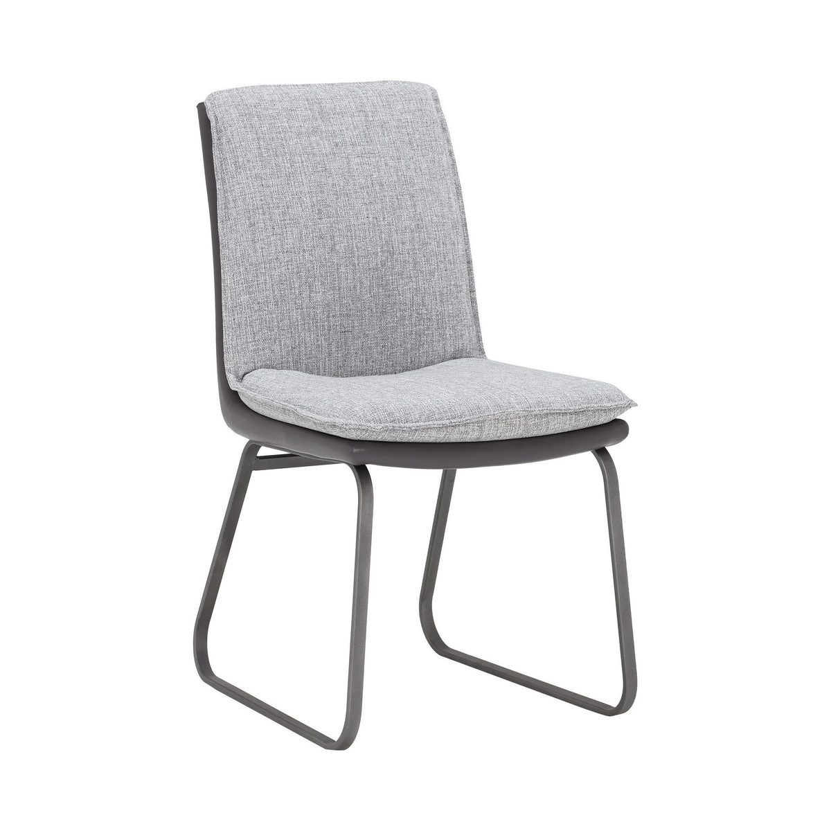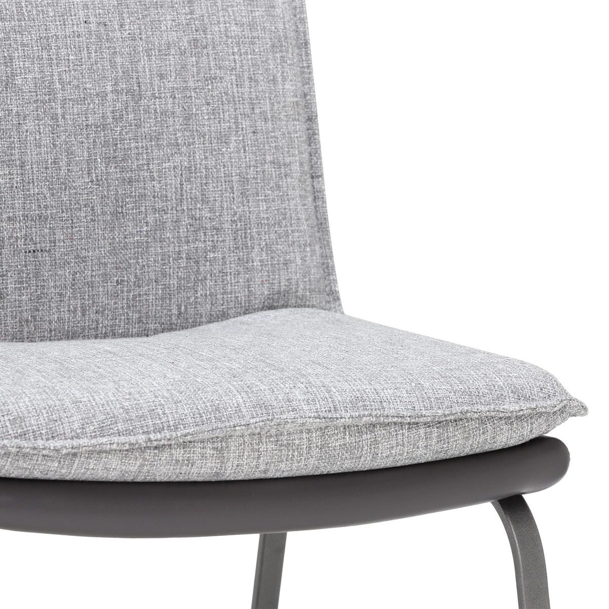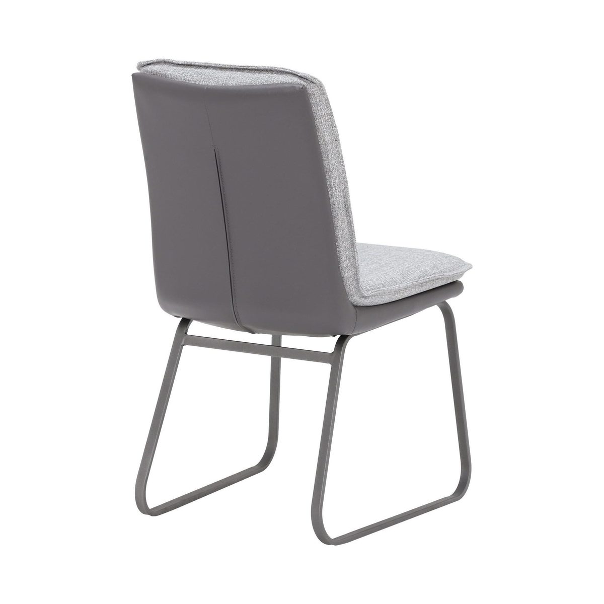 With chic grey fabric seat and back cushion that attractively contrasts with the chairs faux leather exterior, the Braxton Dining Chair provides both style and comfort to your dining space. Designed with a two-tone aesthetic and a contemporary, geometric base, the Braxton radiates the cool and fresh vibes that look their best in relaxed, modern décors.