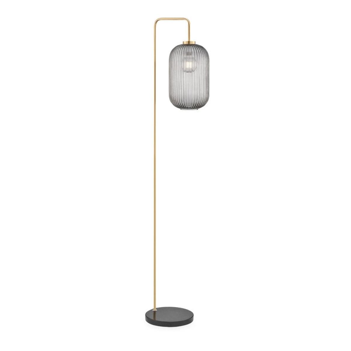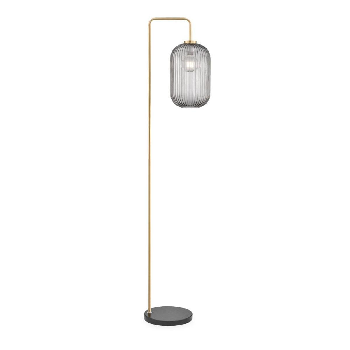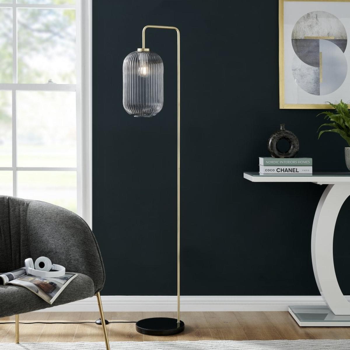 Add some retro cool to your living space with the Braxton floor lamp featuring tinted textured glass in smokey grey with a black marble base. The reeded, textured glass shade has an elegant Art Deco feel, including vintage-style vertical ridges and a brassed metal finish. An ideal piece for living rooms and bedrooms, the Braxton range is a classic style that adds that luxe ribbed trend into your home. View The Braxton Range