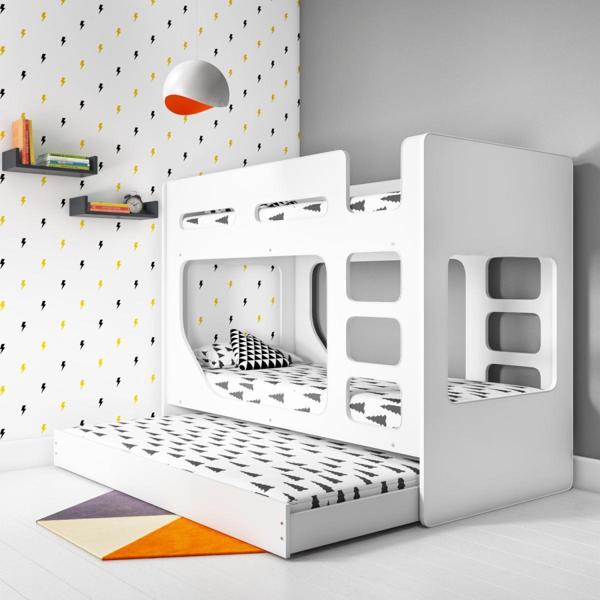 Features we love Trundle bed can be pulled out for sleepover solutions. Built-in ladders on both sides. Curved-edged sturdy railings for sleeping safely Trundle has integrated wheels for ease of use Clean white finish is great with any bedroom style Need to know. Dimensions. W196.6 x D98.5-193.5 x H150.5 cm Size. Standard UK single 3ft/90x190cm Max mattress depth for trundle. 17.5 cm Material. Wood Finish. White Base. Slatted Mattress. Not included Max weight per bunk/trundle. 120 kg Assembly required. Yes.