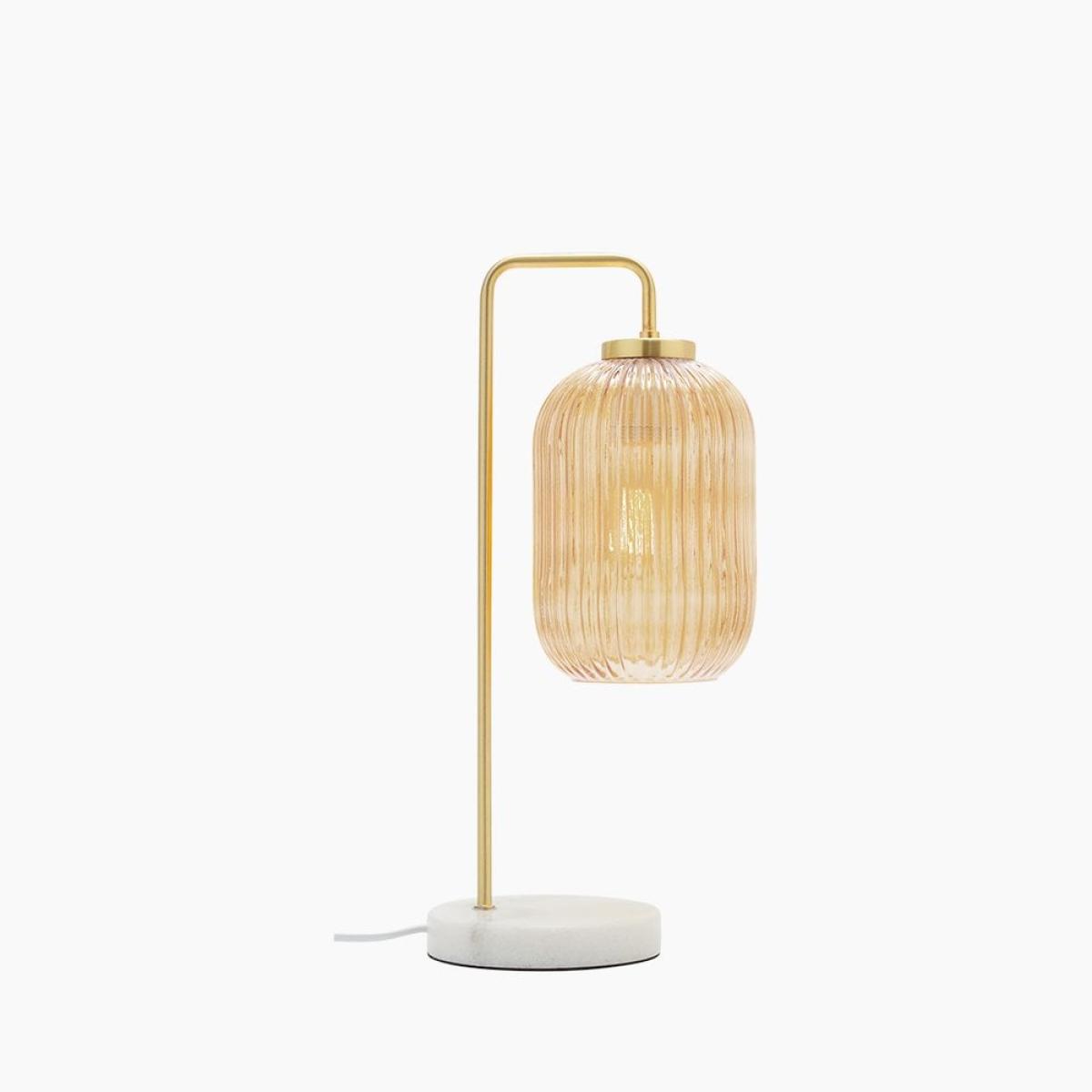 Add some retro cool to your living space with the Braxton table lamp featuring tinted textured glass in amber with a white marble base. The reeded, textured glass shade has an elegant Art Deco feel, including vintage-style vertical ridges and a brassed metal finish. An ideal piece for living rooms and bedrooms, the Braxton range is a classic style that adds that luxe ribbed trend into your home. View The Braxton Range