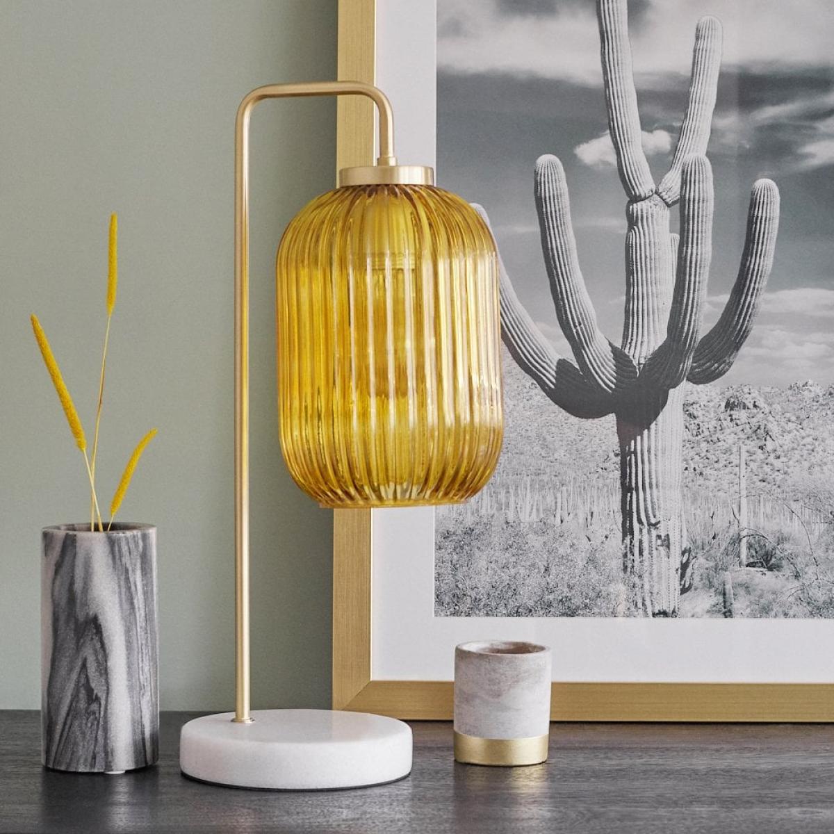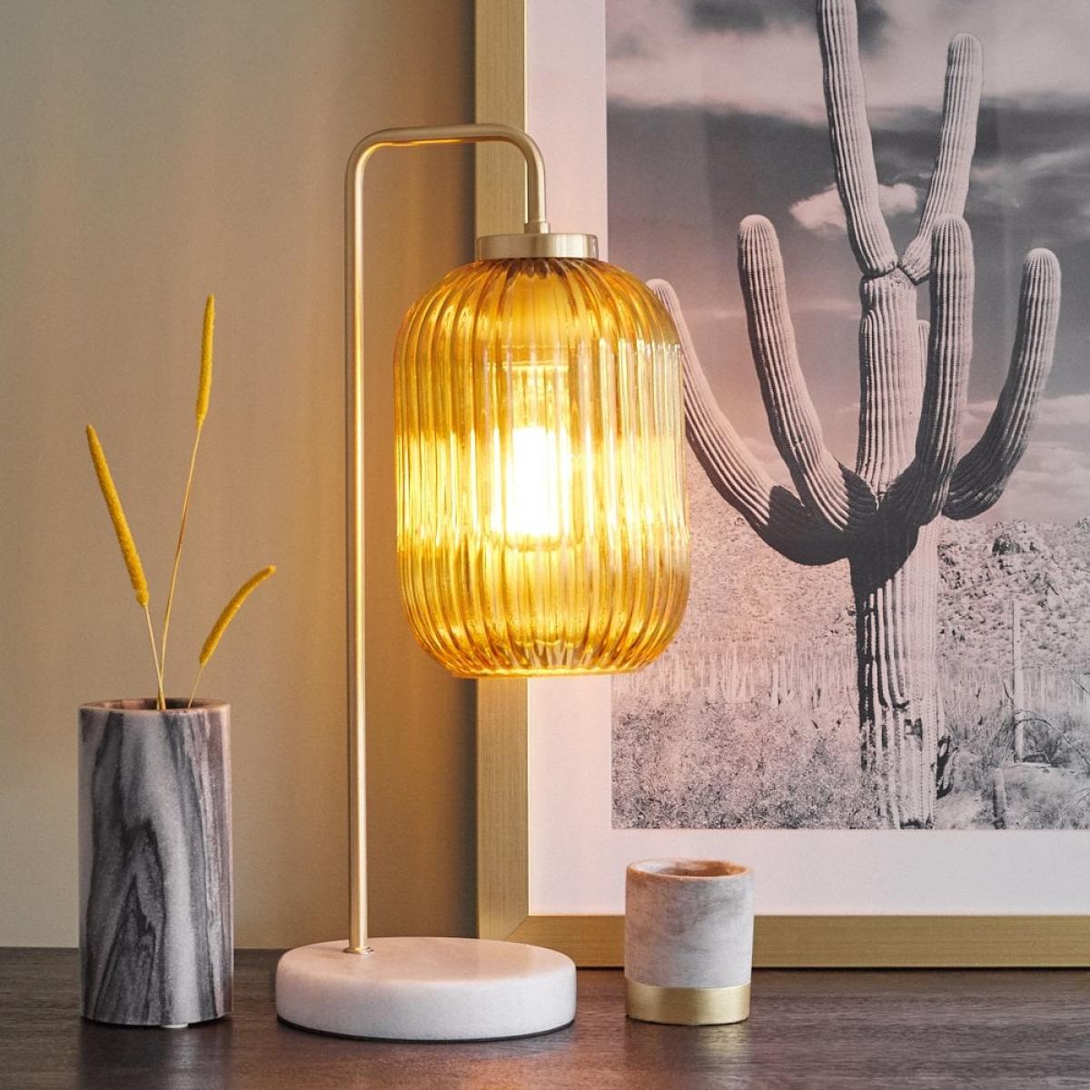 I love this lamp for its warm amber glow and elegant marble base, which makes it versatile for a variety of spaces. It works particularly well in contemporary or minimalist interiors, adding a touch of colour and texture without overwhelming the room. Practical styling tips include placing it on a side table or console to create an inviting atmosphere, or pairing it with neutral tones and soft furnishings to highlight its colour and form. Its compact size makes it suitable for bedrooms, living rooms, or workspaces, where it can deliver both style and function with ease.