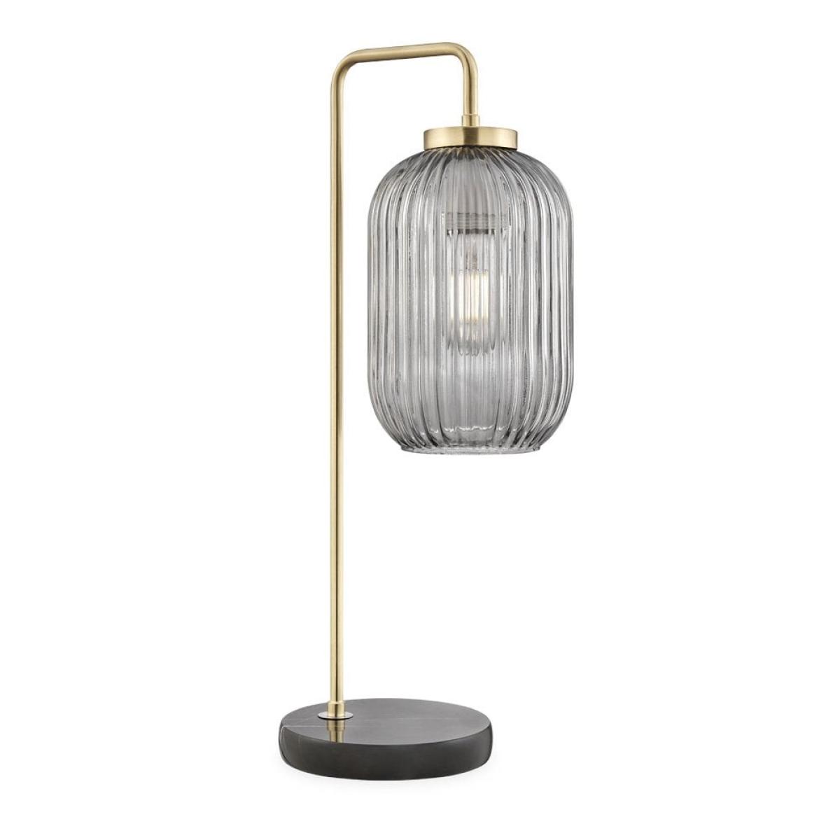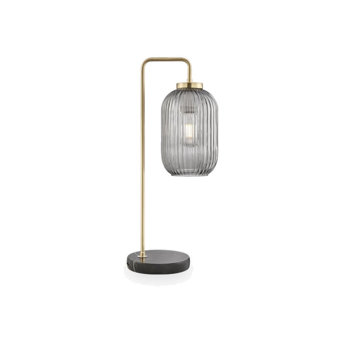 Add some retro cool to your living space with the Braxton table lamp featuring tinted textured glass in smokey grey with a black marble base. The reeded, textured glass shade has an elegant Art Deco feel, including vintage-style vertical ridges and a brassed metal finish. An ideal piece for living rooms and bedrooms, the Braxton range is a classic style that adds that luxe ribbed trend into your home. View The Braxton Range
