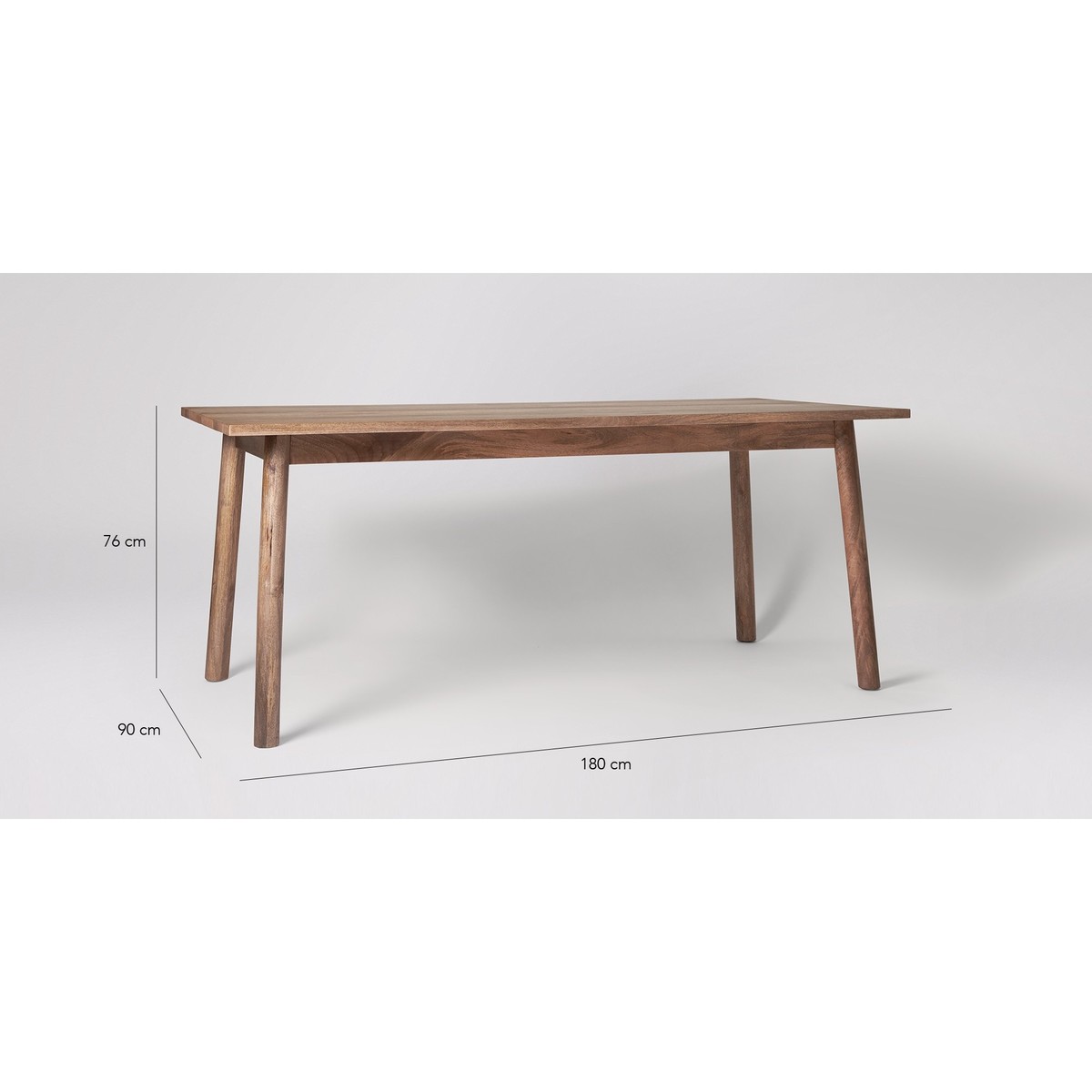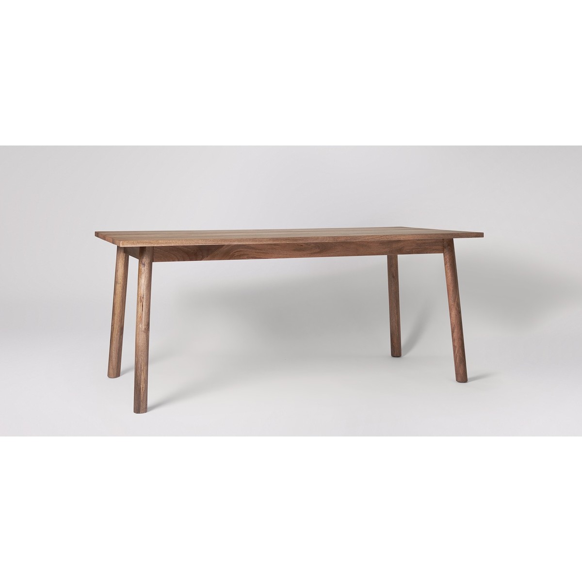 ?Calling all minimalists!?The Bray dining table is the kind of piece that tones down your kitchen or dining room in a laid back Scandi way. Smooth wood, angled and rounded tapered legs, and enough room for six – what more do you need?