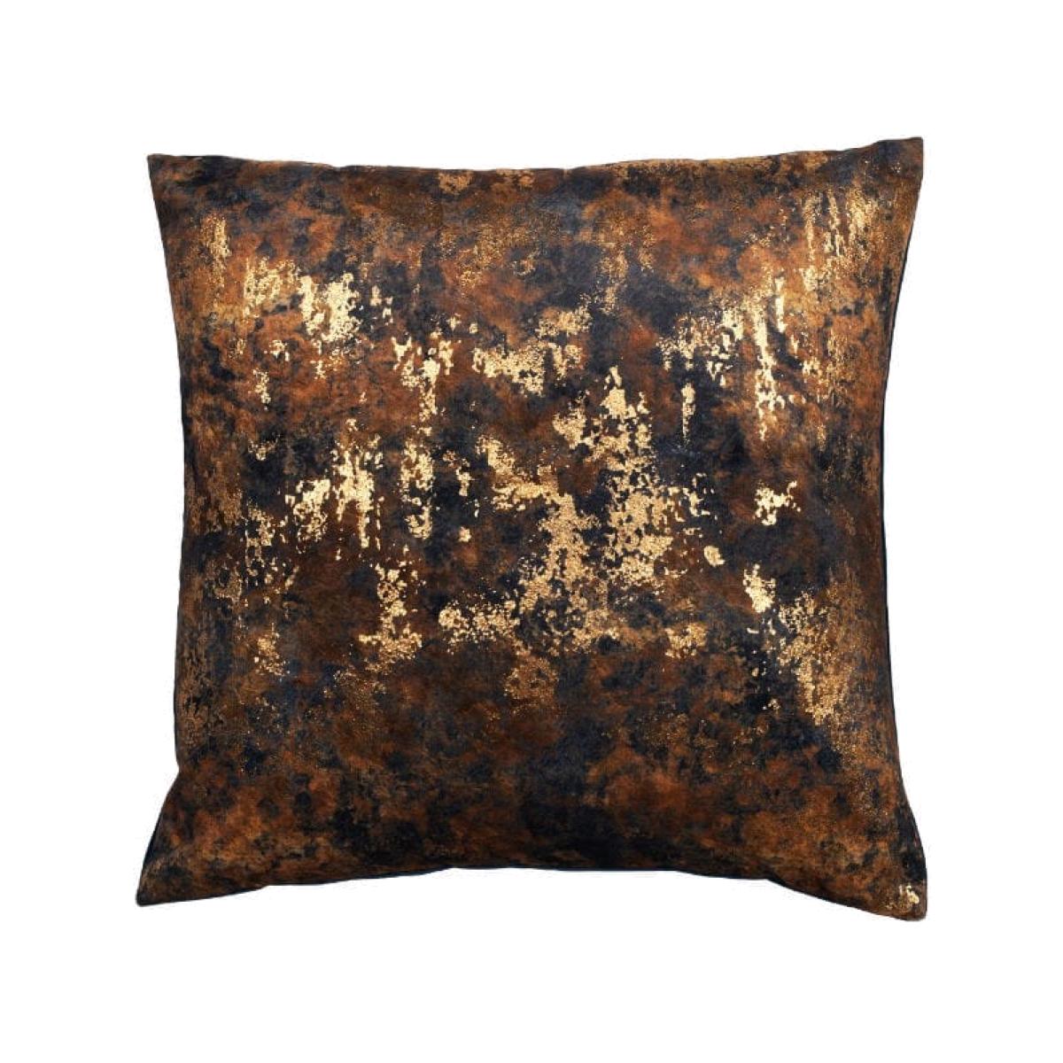 Elevate your living space with the Brazen Cushion. This striking cushion features a metallic gold foil design on a rich rust and green backdrop, adding a touch of opulence to any room. Crafted from 100% polyester, this cushion measures 43 × 43 cm and is feather-filled for a plush feel. Its dry clean only care instructions ensure longevity, making it a durable and stylish addition to your décor. Care Instructions: Dry clean only Specifications: Material: 100% Polyester Dimensions: 43 × 43 cm Design:Metallic gold foil on rust and green Fill: Feather-filled Enhance your living space with the Brazen Cushion, perfect for adding a touch of luxury and texture to your living room, bedroom, or reading nook. Its bold design complements both contemporary and classic interiors.