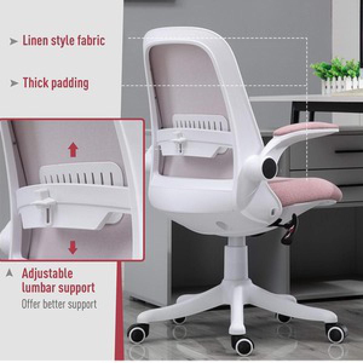 I love this pink linen office chair for its fresh, approachable look that can add a soft touch to any workspace. It’s particularly versatile, working well in modern, minimalist interiors or even softer, Scandinavian-inspired schemes where light, muted tones are key. To style around it, consider pairing with neutral-toned desks and accessories to let the colour stand out, or incorporate complementary blush and pastel accents for a cohesive feel. Practical tips include keeping nearby surfaces uncluttered to highlight its simple, clean lines, and using a plush or patterned cushion to add extra comfort and personalise your setup. This piece is great for injecting a hint of colour without overwhelming a room, making it a charming and functional addition to a home or office environment.