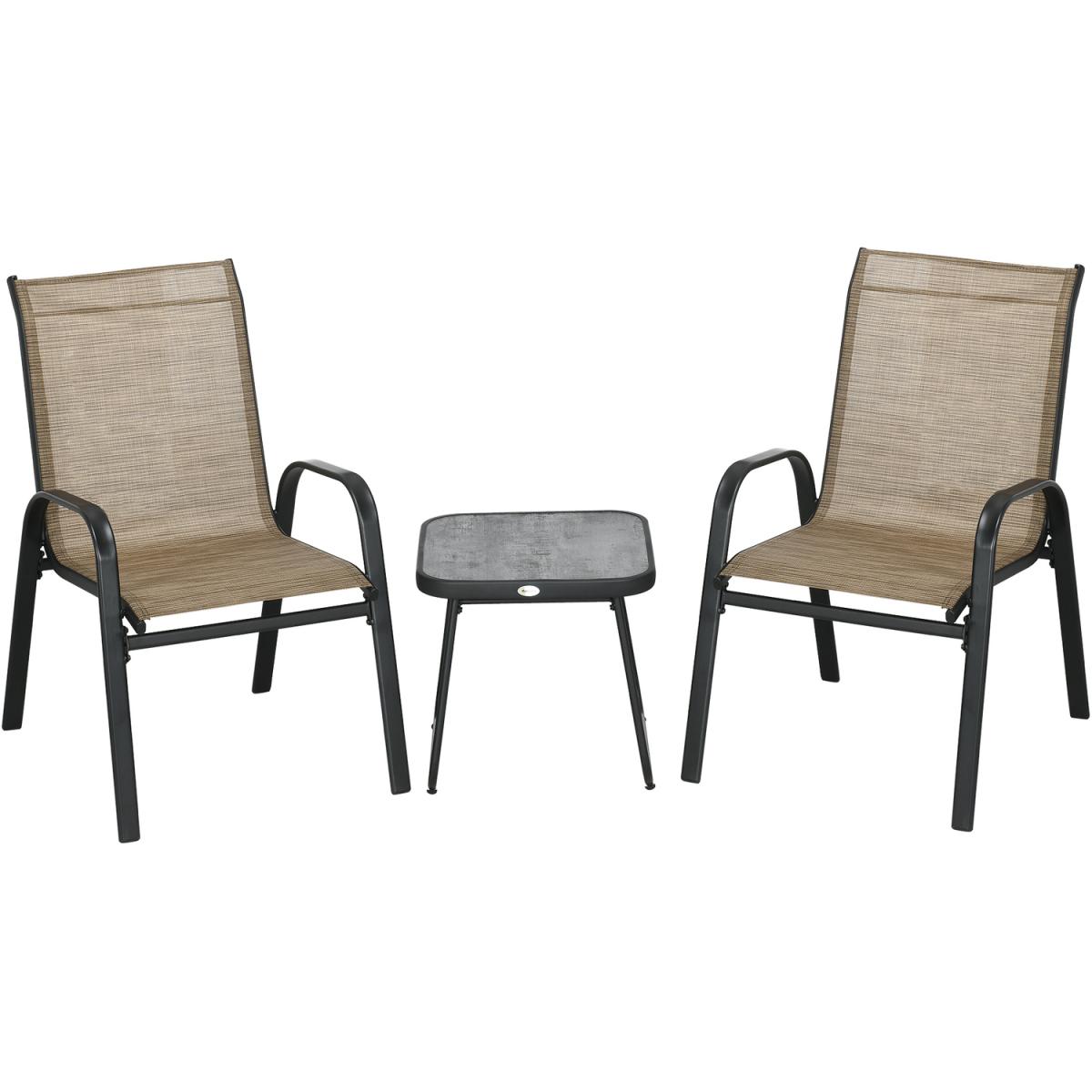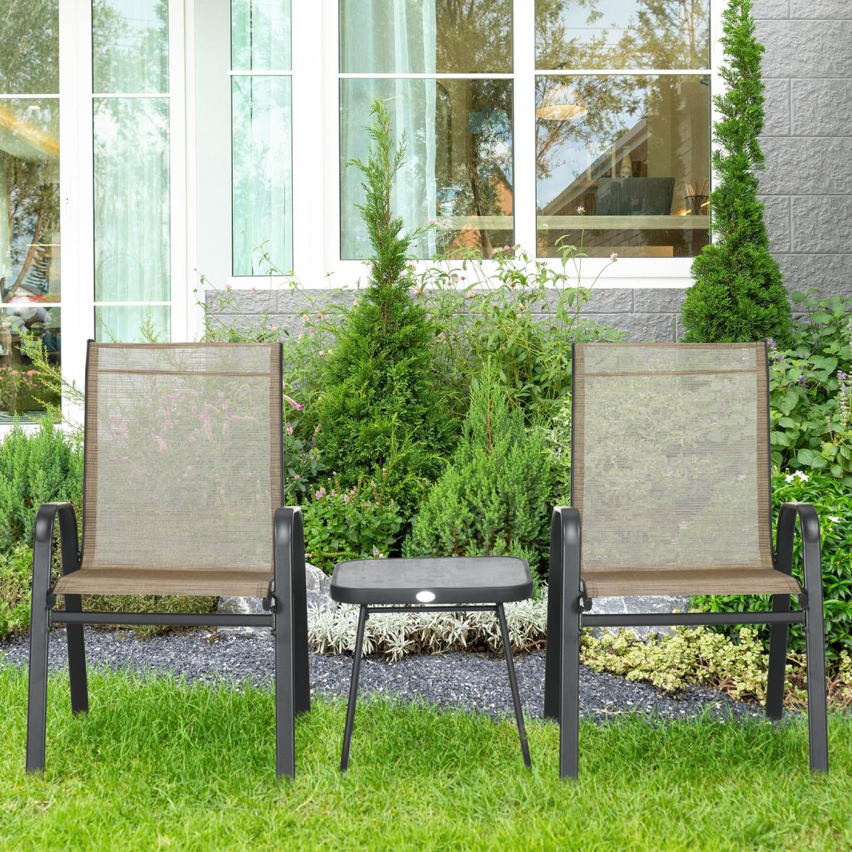 This Outsunny three-piece set is great for relaxing with company outdoors. Comes with two chairs and table. Each piece has a steel frame strong and supportive. A great addition for all outdoor spaces.