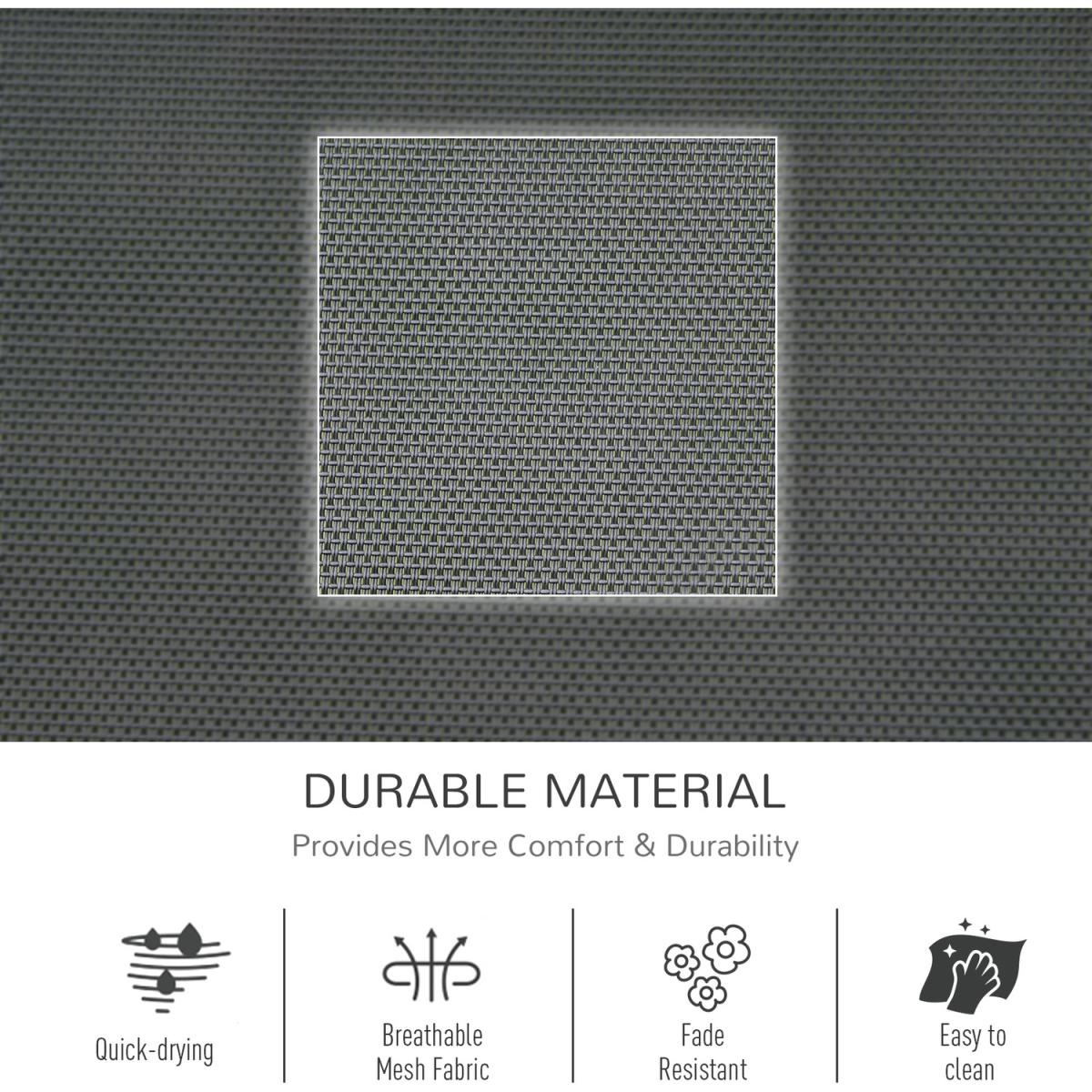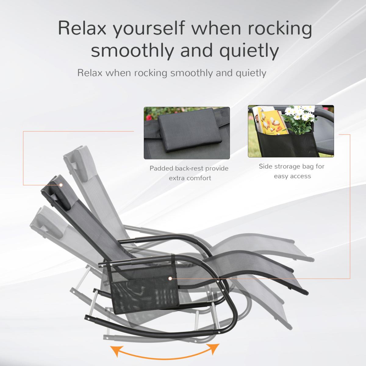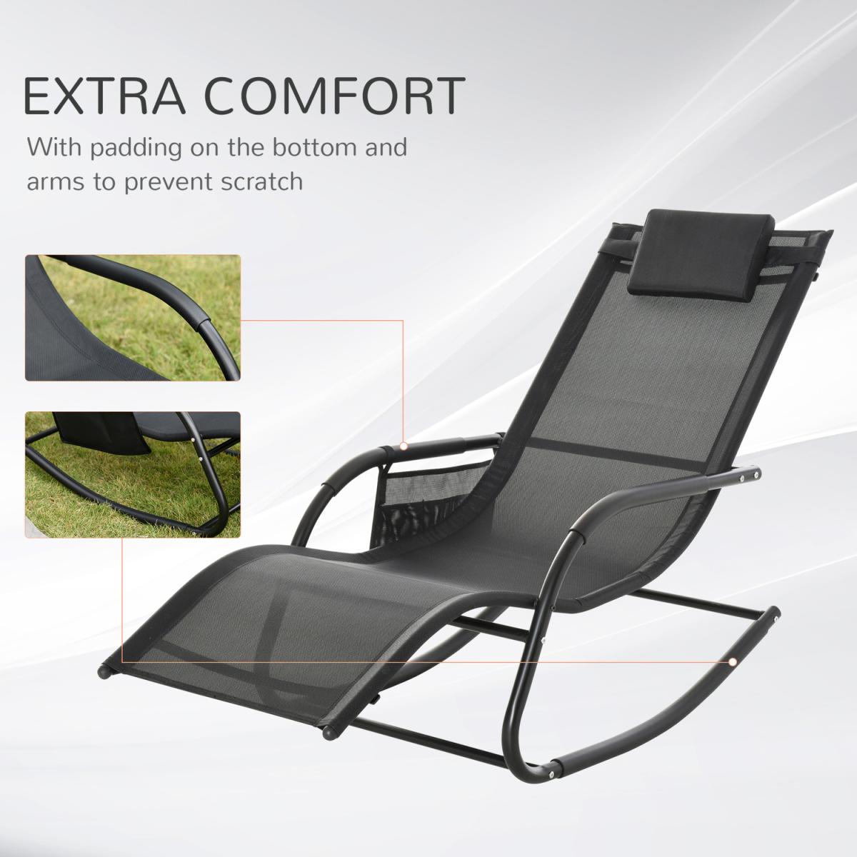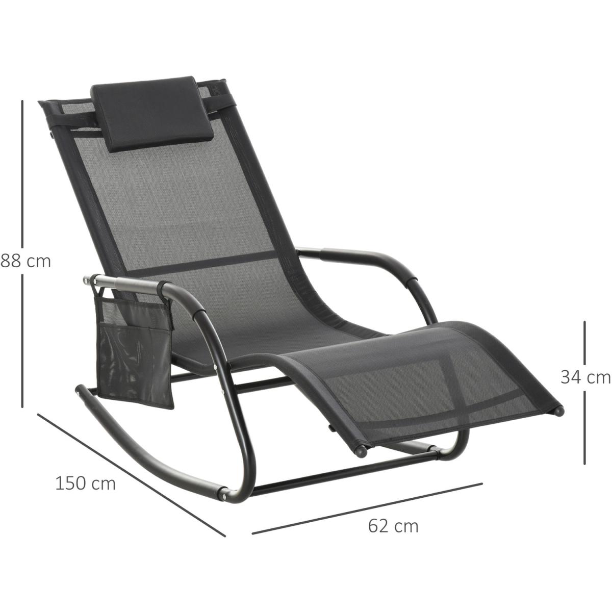 This outdoor garden rocking chair from Outsunny is a great way to relax and sit. Ergonomic shape designed caters to your fit and has a breathable mesh fabric ensuring good air circulation and prevents sweat build-up for long time relax. The removable pillow offers extra comfortable support and convenience. With a removable side pocket, you can put your remote, magazines and other small items on side pockets easy access.