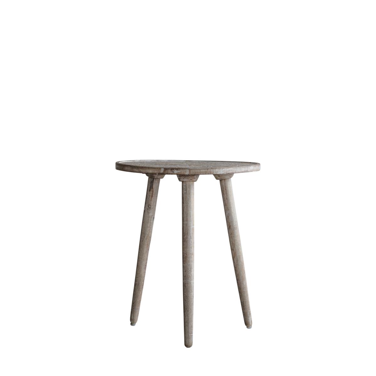 * Hand carved details* White-wash finish* Mango wood frame This side table boasts a soft natural finish and hand-carved details in a white-wash finish, ensuring it stands out in any room. The carvings are delicate and shallow, making it practical for everyday use while maintaining its aesthetic appeal. The hand-turned tapered legs add a touch of elegance, making this piece perfect for any living space.