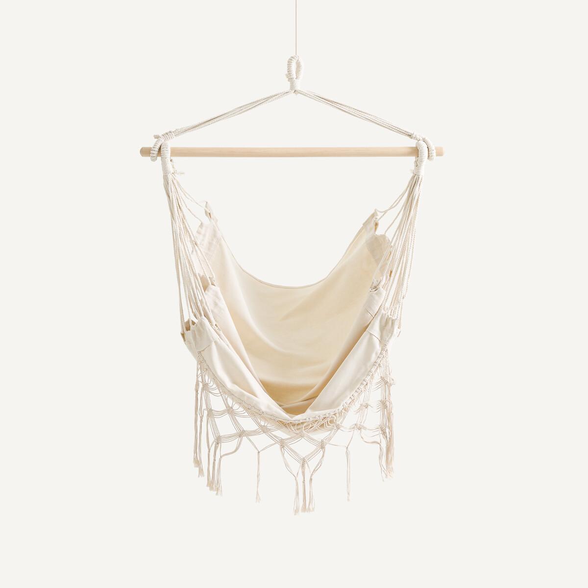 I love the breezy, relaxed vibe this hammock brings to a space. It’s perfect for adding a boho touch to interiors with neutral tones or natural textures, such as rattan, wood, or linen. It works well in bedrooms, sunrooms, or even cosy corner nooks where you want to create a calm retreat. For styling, consider hanging it at a comfortable height on a sturdy wall hook, and dress it up with a few cushions or a throw to enhance its cosy appeal. Keep the surrounding area uncluttered for maximum impact, and let the hammock serve as an inviting focal point that invites a moment of rest.