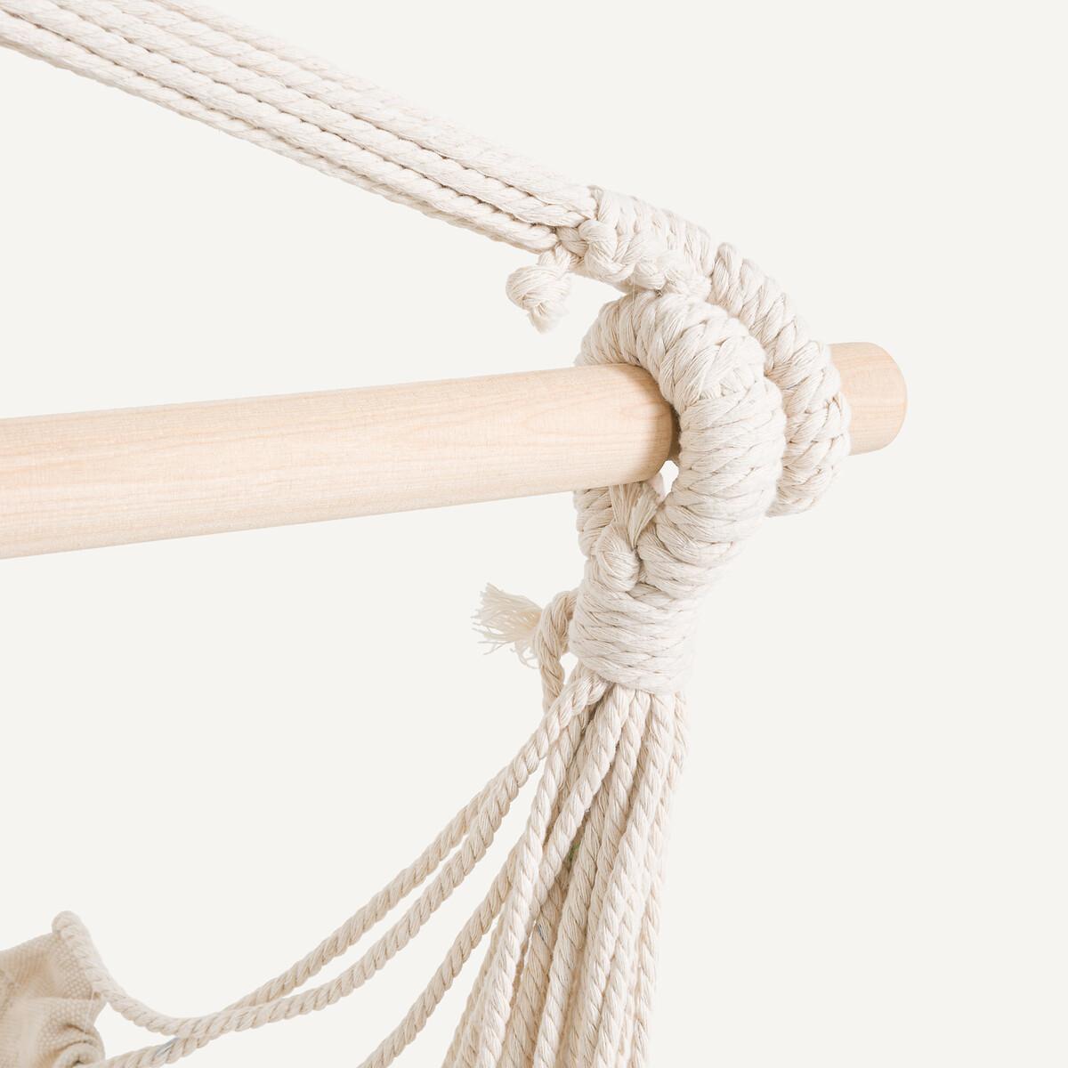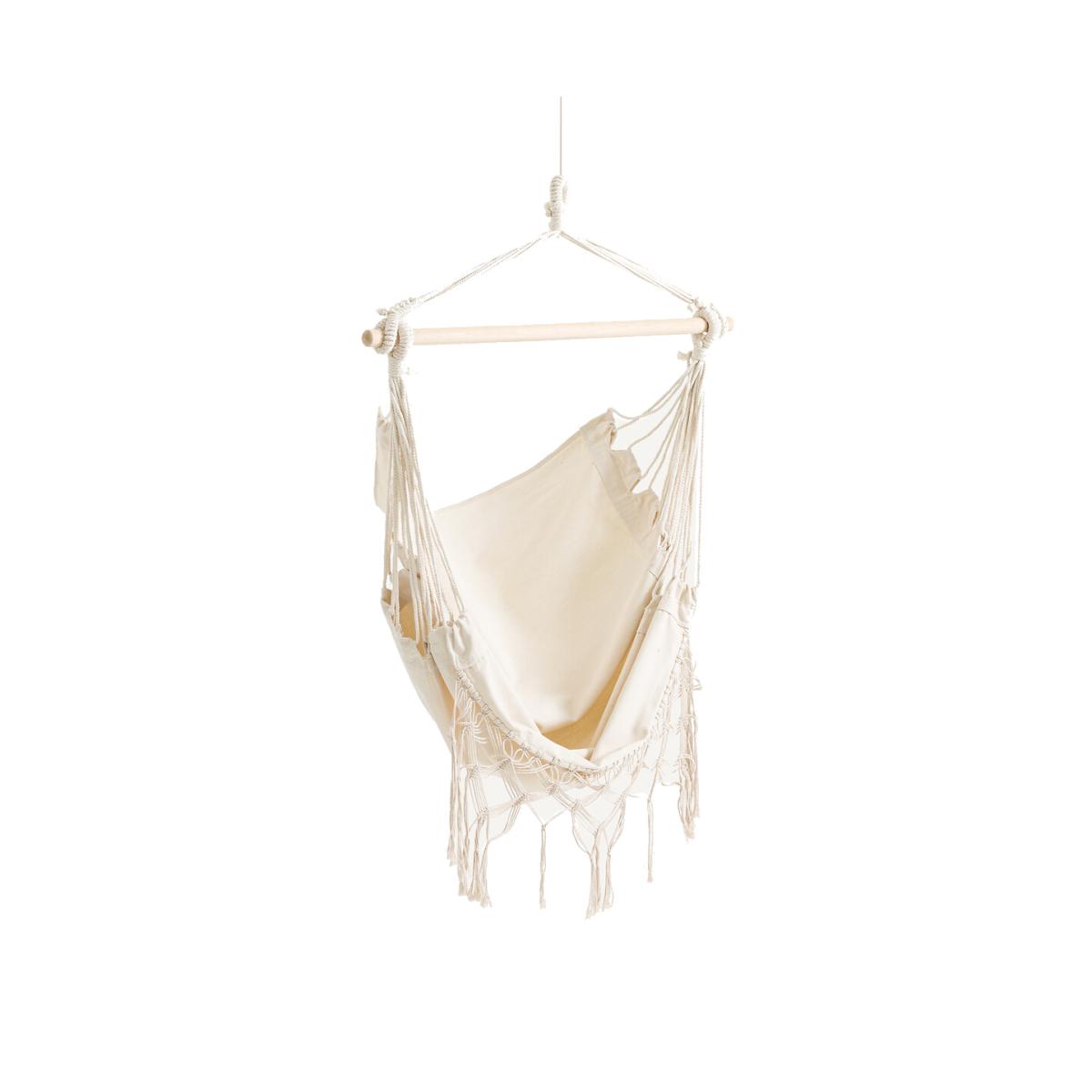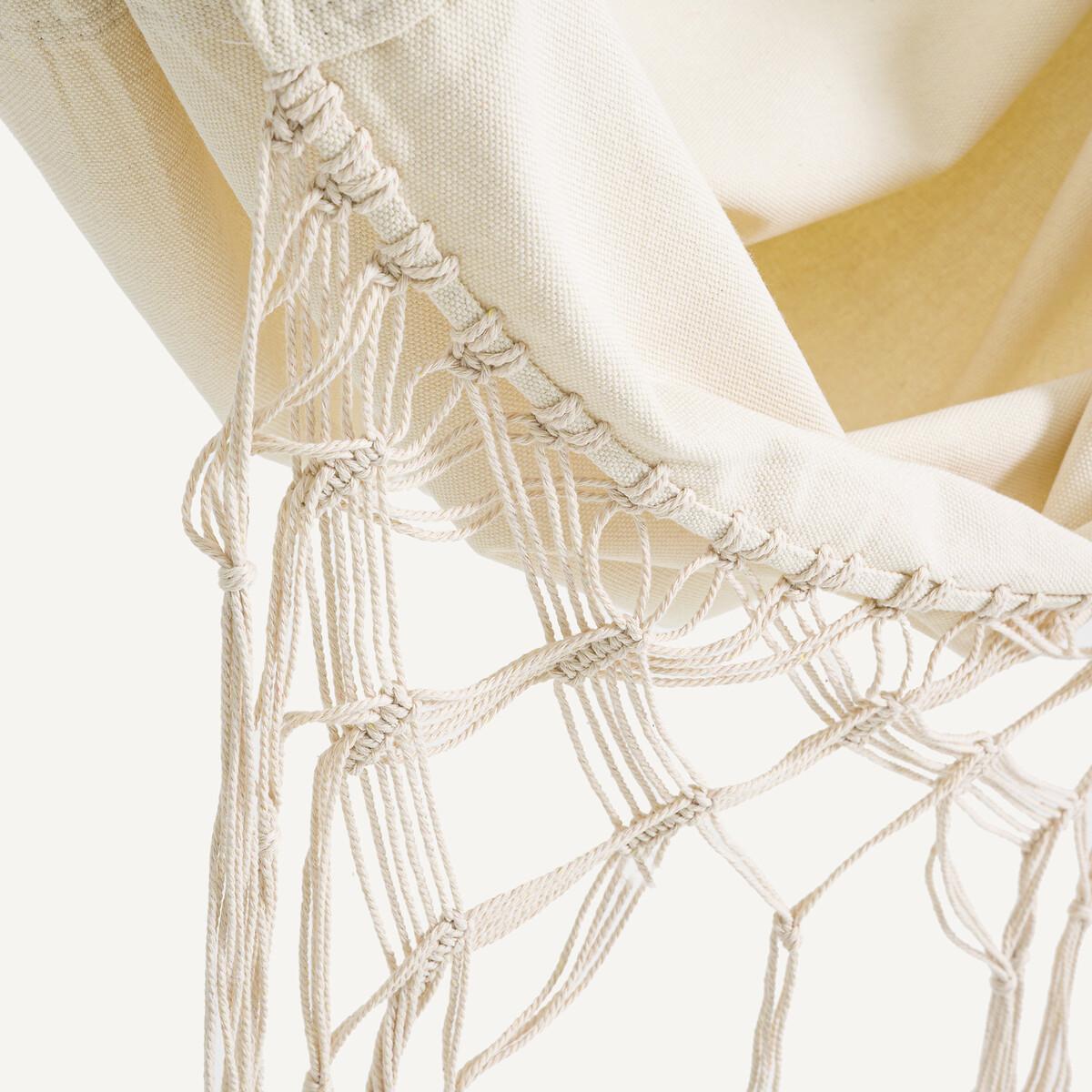 A bubble of well-being and absolute relaxation, the Bregnac hammock is the perfect invitation to unwind. Bregnac takes up very little space and can be installed under a tree or on the terrace. Product Details • Fabric 55% cotton, 45% polyester • Cotton and polyester rope • Fabric fixed at the ends on a birch bar • FSC® certified wood. Dimensions • Length: 130cm • Height: 100cm • Depth: 30cm • Weight: 1.6kg • Maximum weight supported : 120kg • Assembly required. • WOOD FROM SUSTAINABLY MANAGED FORESTS. FSC® certified wood comes from forests that are environmentally, socially and economically well managed. Dimensions and weight of parcel1 parcel • W99 x H9 x D11cm, 1.6kg