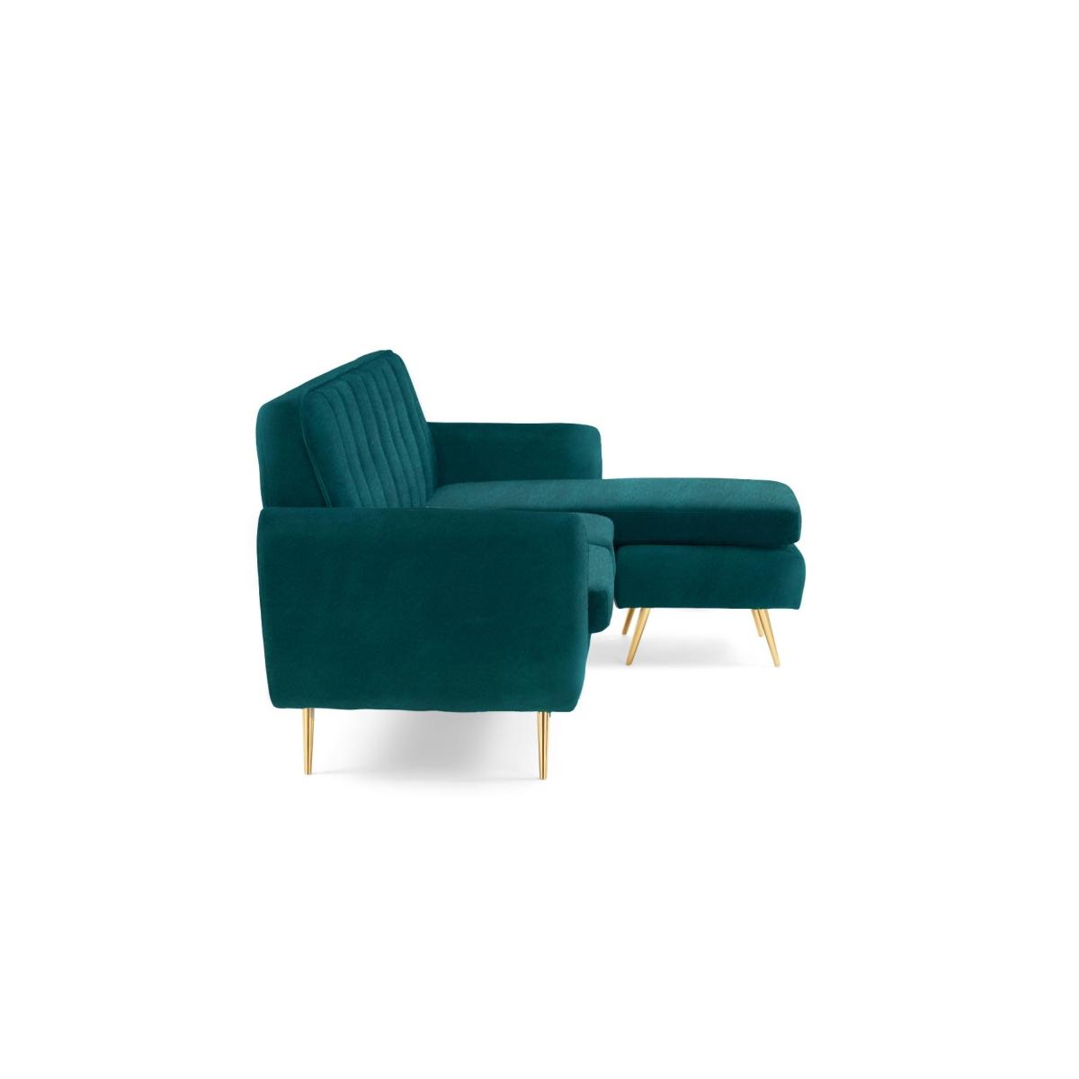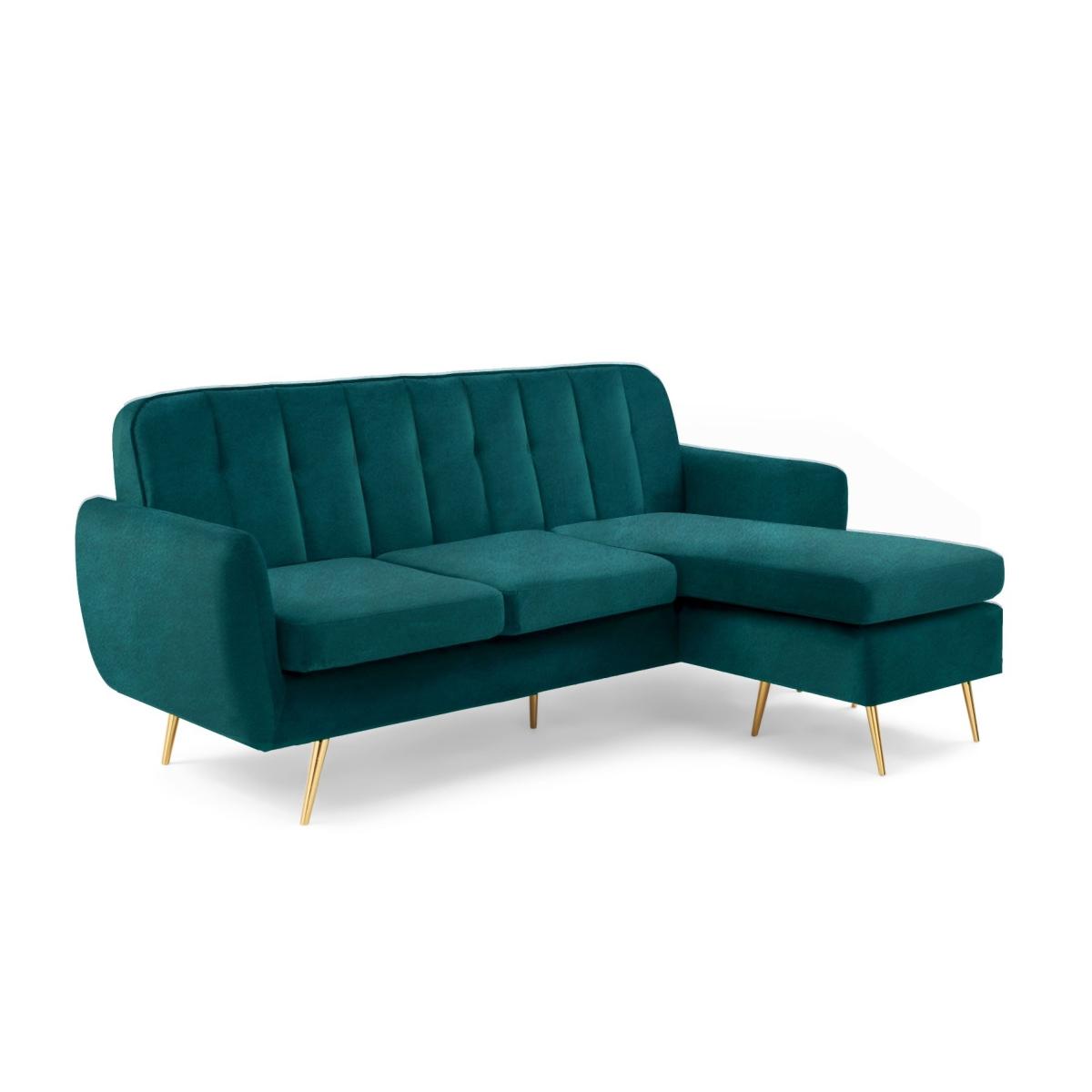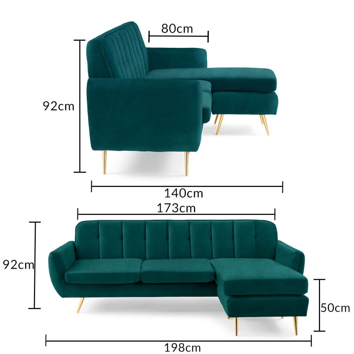 Kick off your shoes, lie back and take it easy with the Brema Chaise Sofa Bed. High armrests accentuate the silhouette giving extra support and comfort. If you love the freedom of a modular sofa, look no further. With a chaise lounge, the comfy Benson will quickly become the hero of your lounge. Finished in fine velvet or linen fabric Gold chrome legs slanted at a sophisticated contemporary angle. Comfortably seats three (more if chaise longue is used as an extra seat)Choose from royal blue, grey, green velvet or grey linen. Just assemble the legs and your sofa is ready!