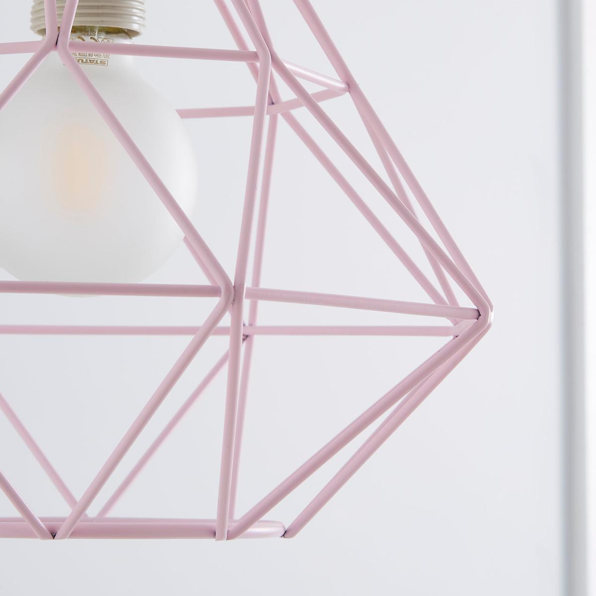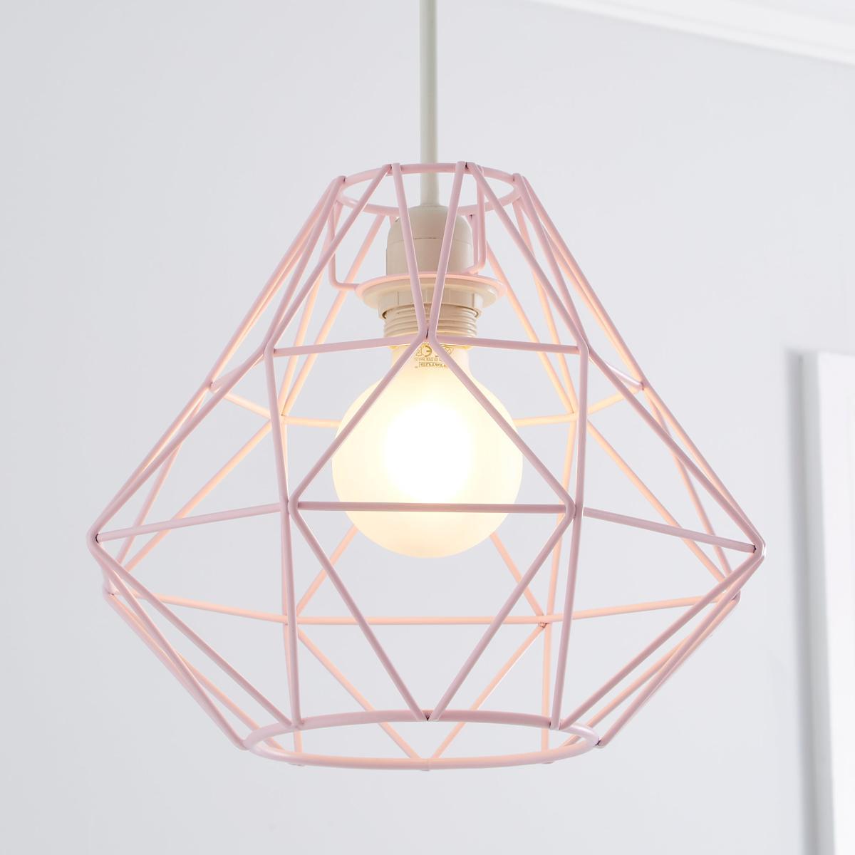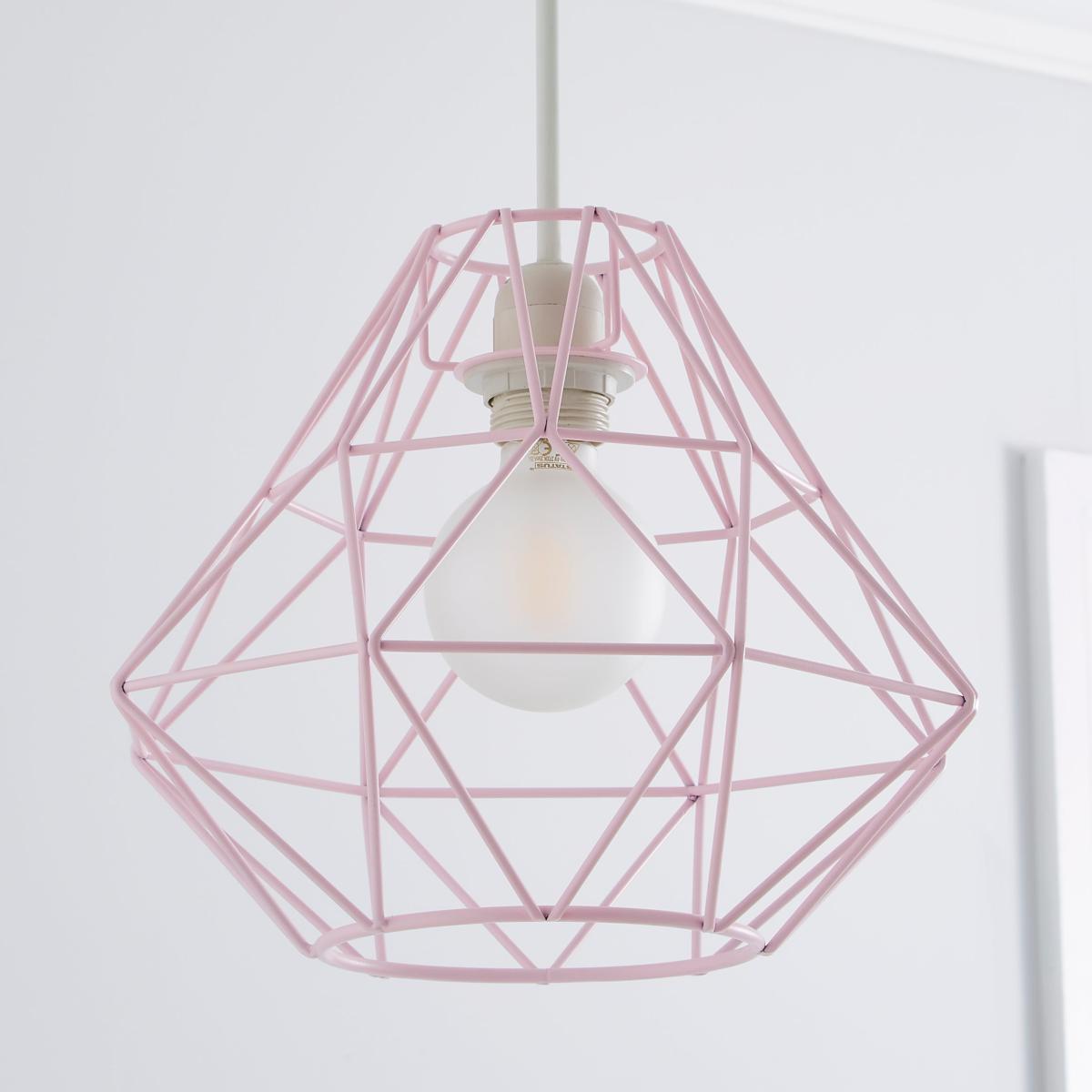 I love this pink pendant shade for adding a playful yet sophisticated touch to any space. Its geometric wire frame design works particularly well in modern and contemporary interiors, but it can also bring a fresh vibe to Scandinavian or eclectic schemes. The soft pink hue offers a subtle pop of colour without overpowering other elements. For styling, consider using it in kitchens or dining areas to create a cosy yet stylish atmosphere, or in a children’s room for a fun and lively focal point. Pair it with minimalist decor to let the shade stand out, or combine with neutral tones and textured fabrics for a balanced look. Its easy fit design makes it versatile and simple to install, making it a practical choice for many spaces.