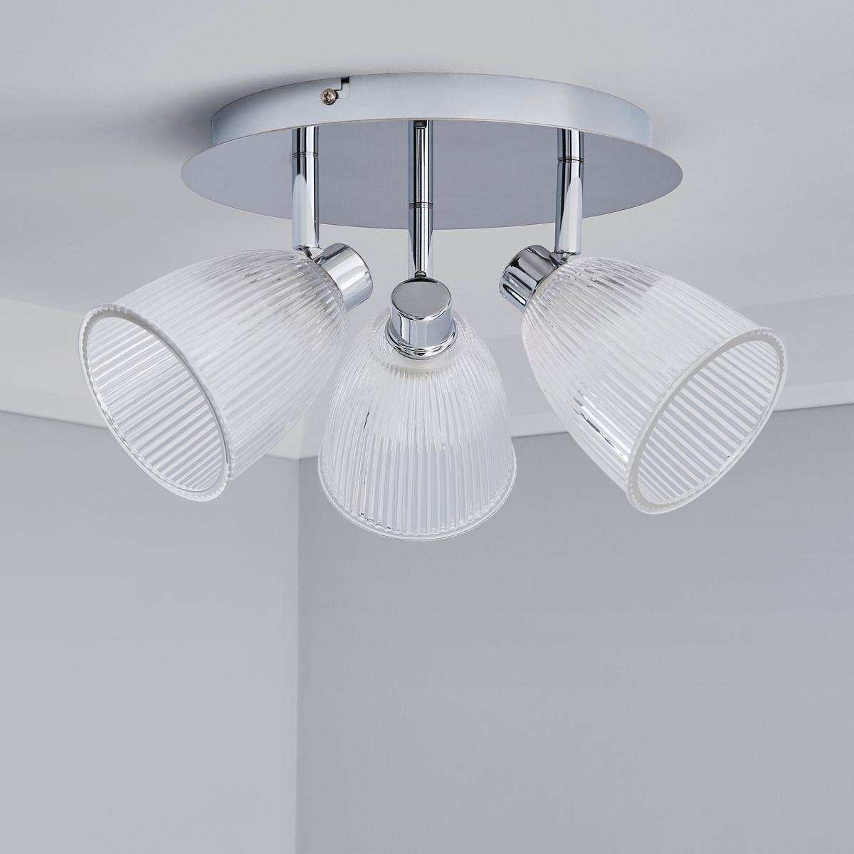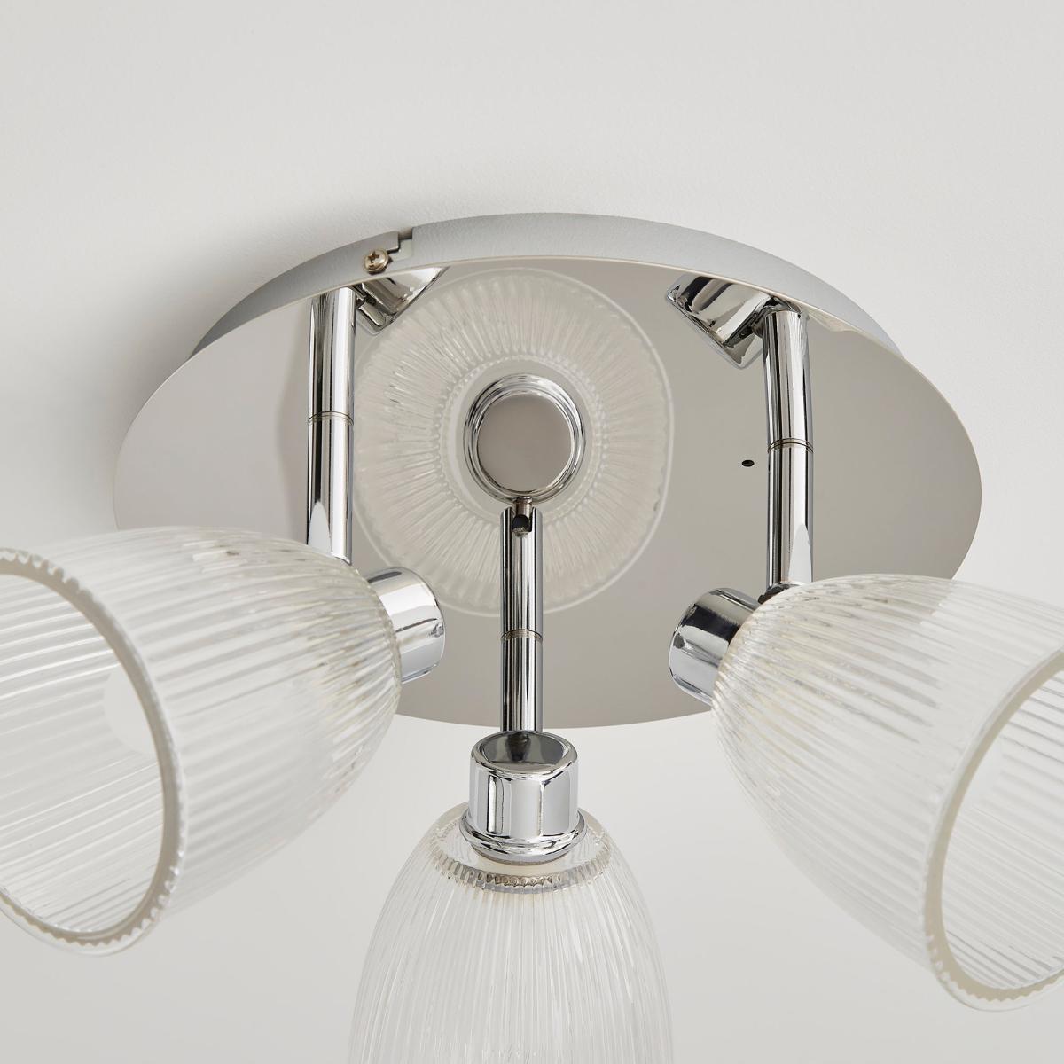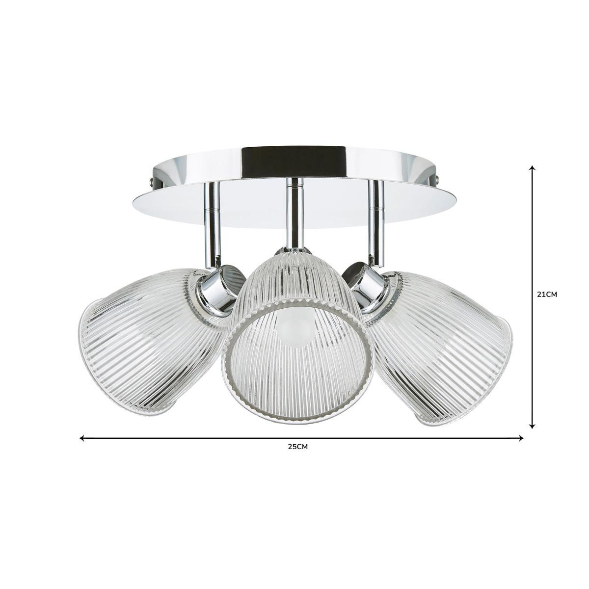 Bremont 3 Light Ribbed Glass Bathroom Spotlight Clear, Chrome