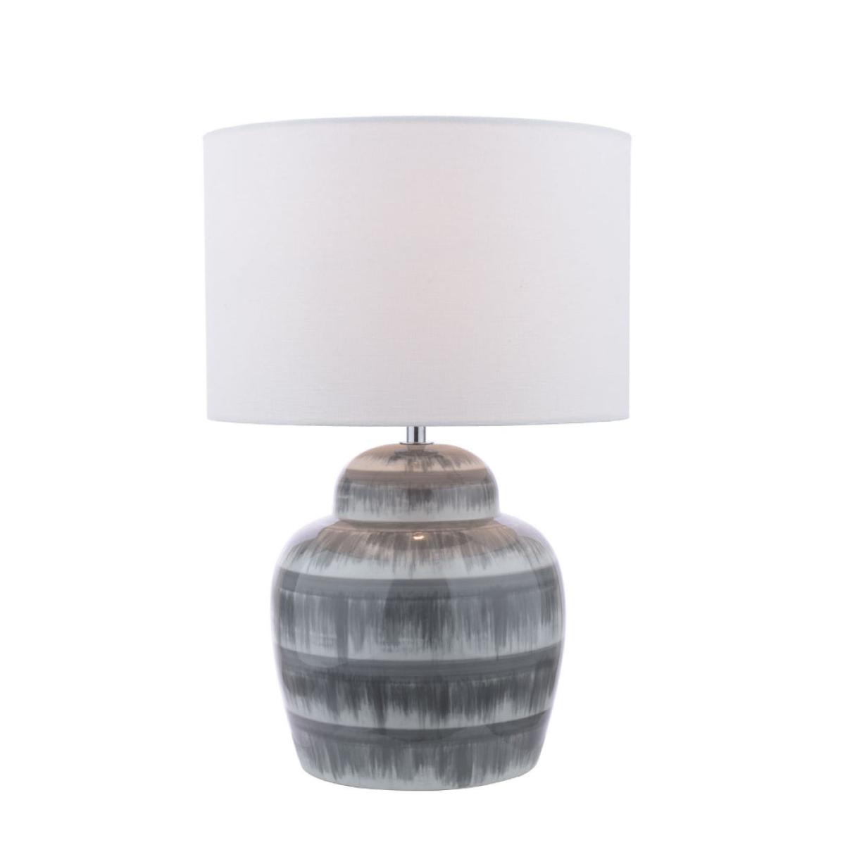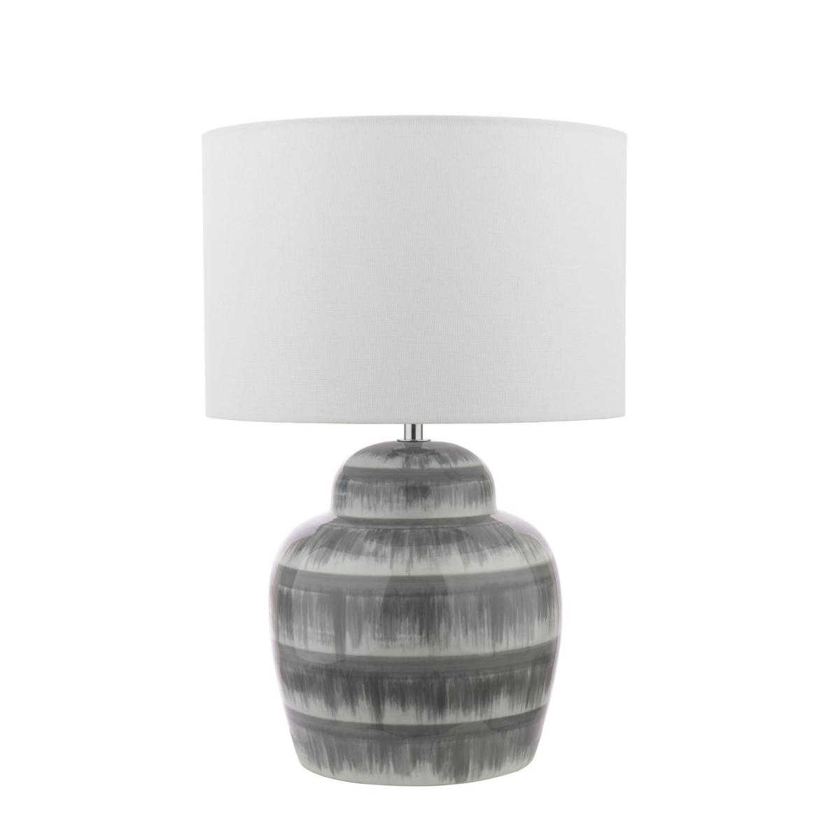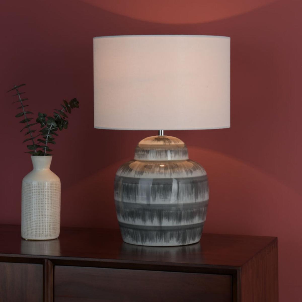 Brings effortless modern style to any space. Crafted from grey ceramic with a soft brushed finish and paired with a neutral fabric drum shade, this lamp offers a calm, contemporary aesthetic that suits a wide range of interiors. Perfect for bedside tables, living rooms, or hallway consoles, the Brenna provides warm, ambient lighting while adding a touch of understated sophistication.