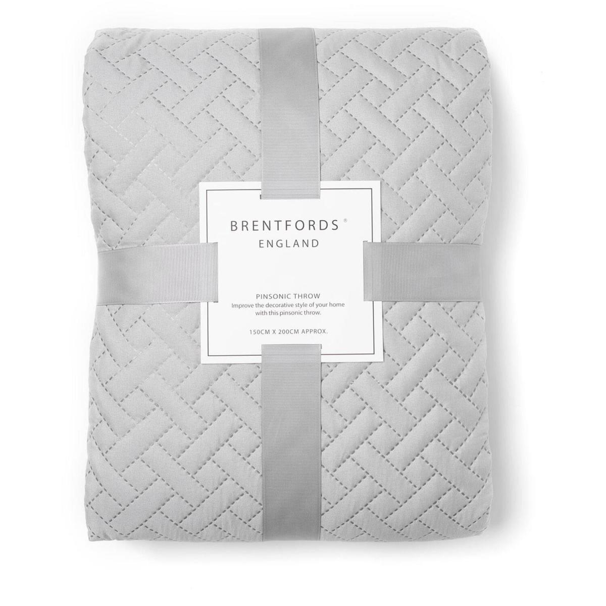Brentfords Geo Pinsonic Throw Quilted Bedspread - Silver / 150cm