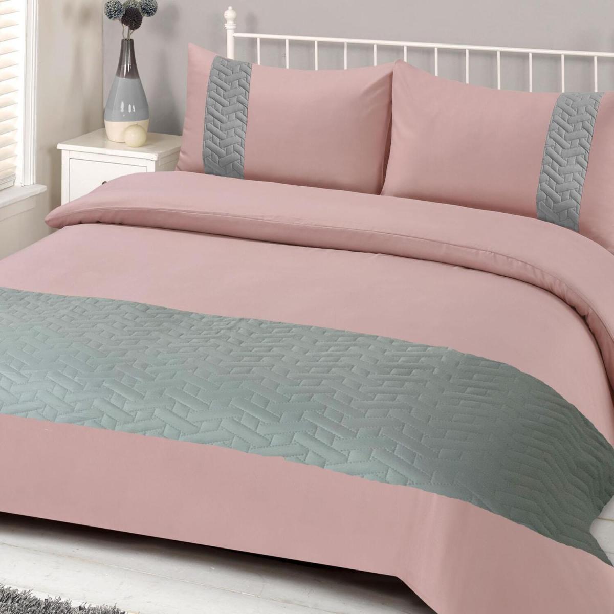 This luxurious pinsonic panel duvet cover set would look ideal in any bedroom, and is a perfect way to give your room a fresh look. This duvet set is made from soft touch polyester, making it soft, comfortable and durable. This easy-care bed linen will give your bedroom that modern feel and once washed it has great resistance to wrinkles, fading and shrinkage. The embroidered panel set includes a duvet cover and matching pillow case(s), all you need for a good nights sleep.