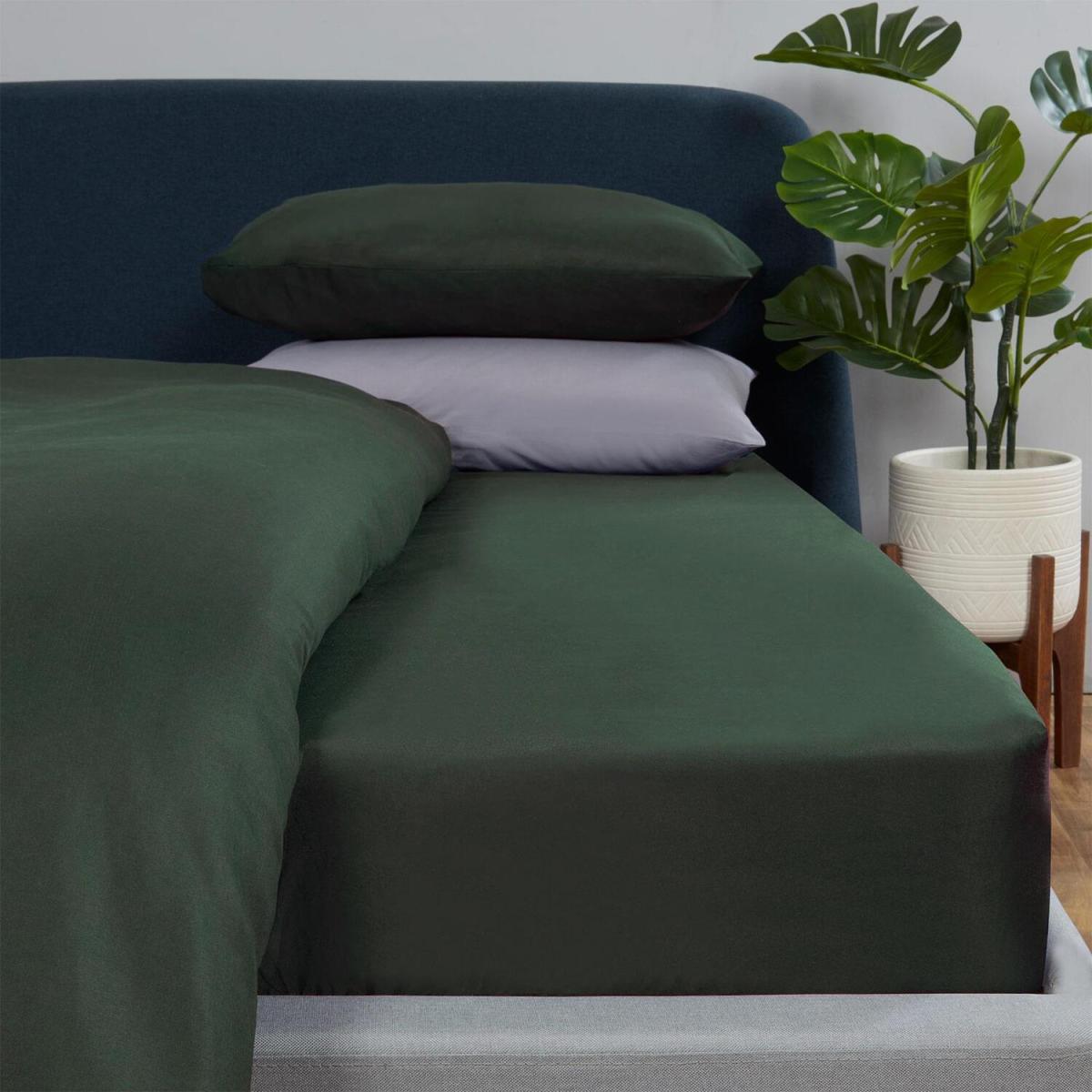 Brentfords Plain Dyed Fitted Bed Sheets Non-Iron - Forest Green / Single