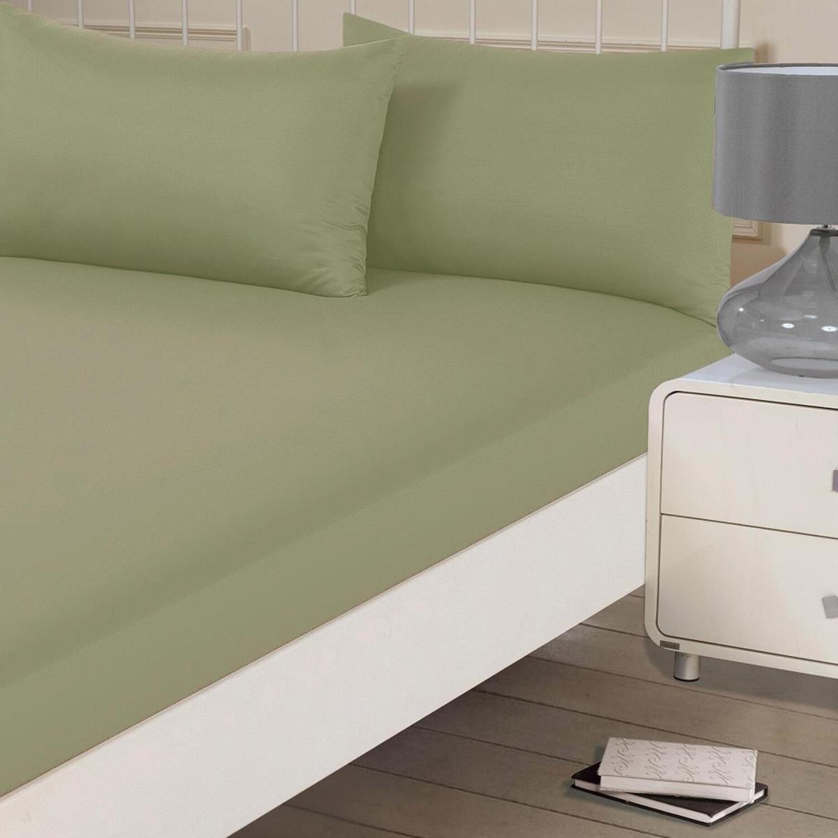 Brentfords Plain Dyed Fitted Bed Sheets Non-Iron - Olive Green / Superking