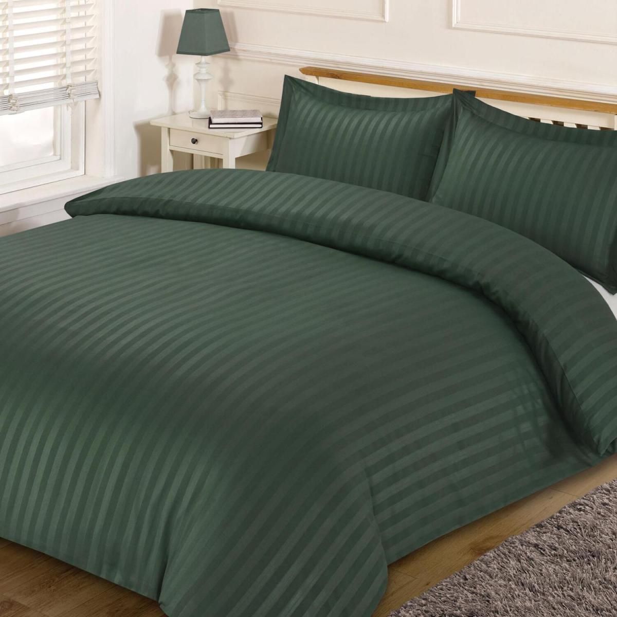 Brentfords Satin Stripe Duvet Cover Bedding Set - Forest Green / Single