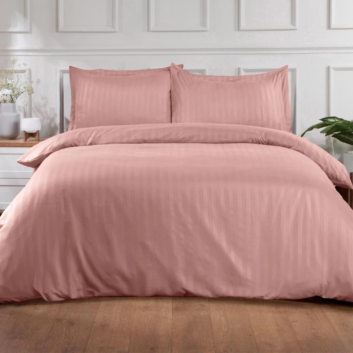 Brentfords Satin Stripe Duvet Cover Bedding Set - Pink / Single