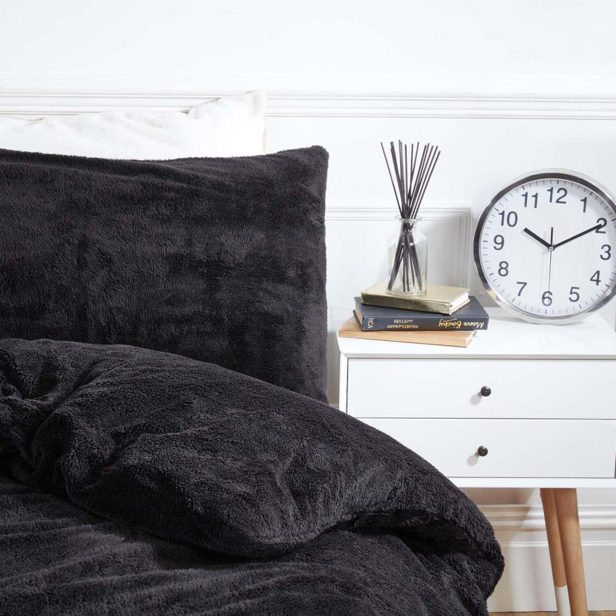 I love the Brentfords Teddy duvet set for its cosy, plush texture that adds a warm, inviting feel to any bedroom. Its monochrome colour scheme makes it a versatile choice, working particularly well in modern, minimalist, or Scandinavian-style interiors. It’s an excellent option for creating a calming retreat and can be easily styled with layered throws and cushions to enhance its tactile appeal. For practical styling tips, pairing it with neutral or light-coloured bedding and adding subtle metallic or wooden accents can help balance the richness of the black, while a clean-lined bed frame and simple decor keep the look sleek and contemporary.
