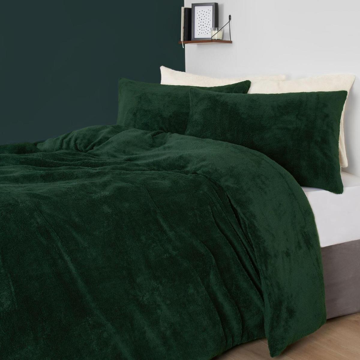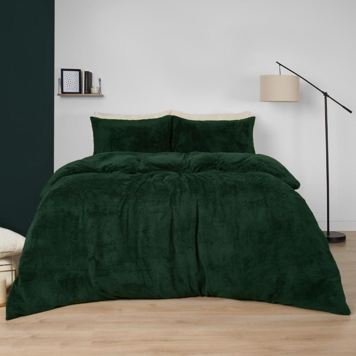 Brentfords Teddy Duvet Cover with Pillow Case Bedding Set - Forest Green / Double