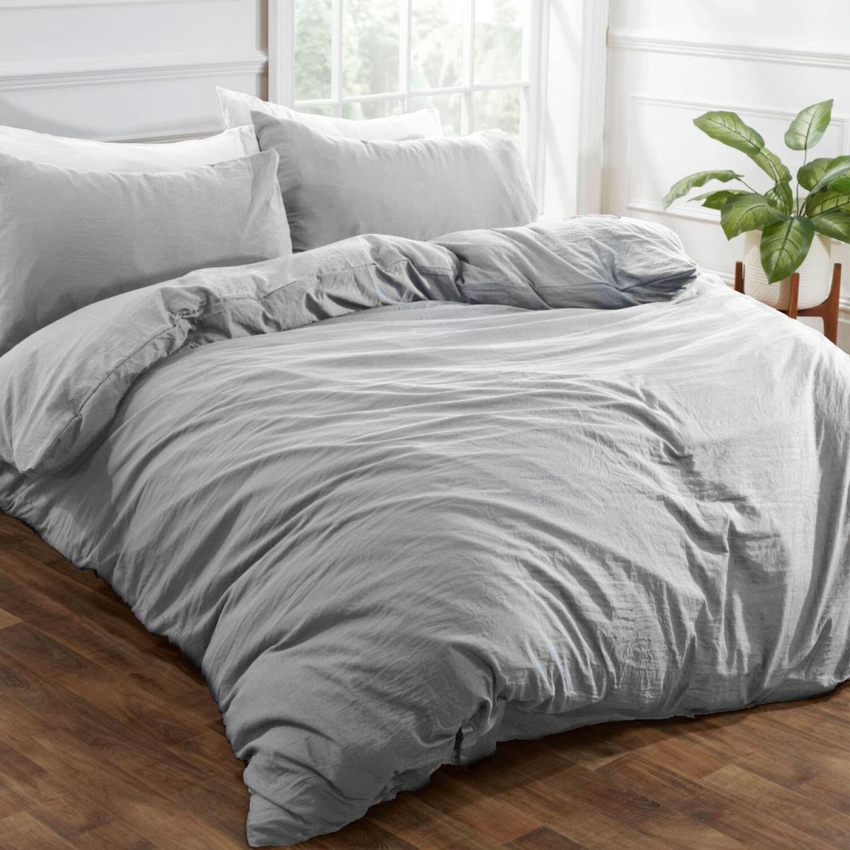 Brentfords Washed Linen Look Duvet Cover Set with Pillowcases - Silver / Single