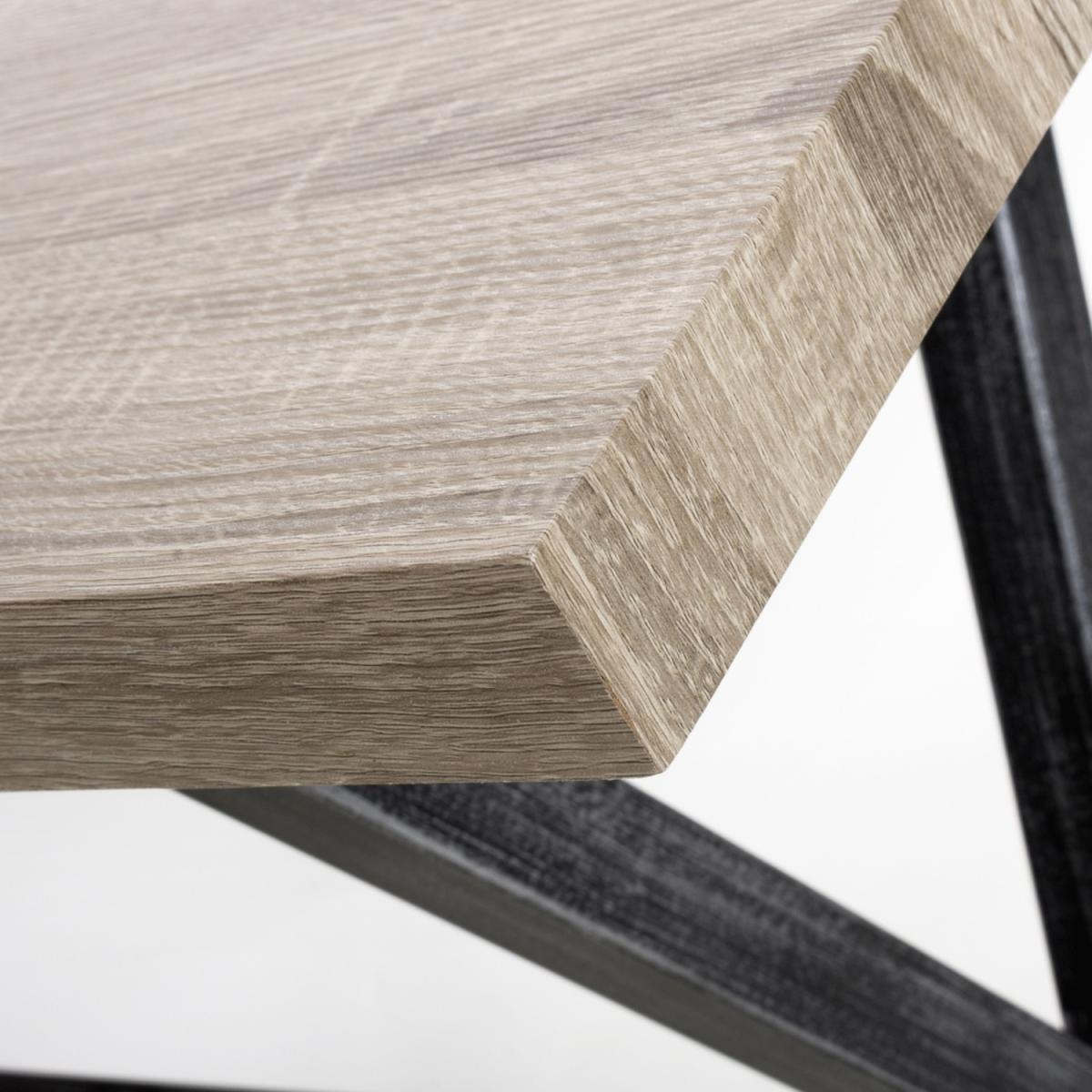 I’m a fan of this oak breakfast bar for its clean lines and metal cross-leg frame - it feels both light and sturdy. It suits compact city kitchens, Scandi-inspired dining nooks or an industrial home office setup. For styling, keep the top clutter-free: tuck streamlined stools underneath, add a monochrome ceramic mug or a small potted herb in the corner, and use a slim tray if you need to organise cutlery or condiments. Its narrow profile also works well against a window or room divider.