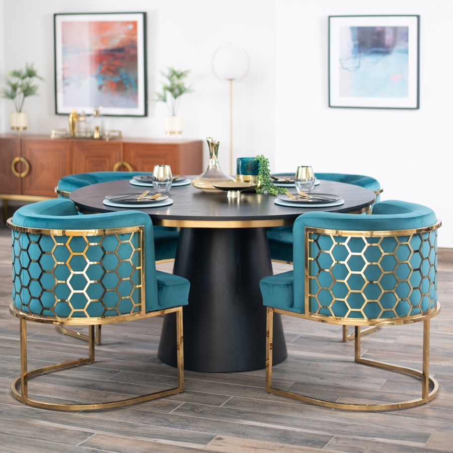 I love this table for its sleek, modern silhouette that combines form and function effortlessly. Its black finish, accented with a subtle brass edge, makes it versatile and suitable for a wide range of interiors-from contemporary and minimalist to more eclectic schemes. It works particularly well in spaces that benefit from a statement piece without overwhelming the room. For styling, pair it with statement chairs in textures or colours that complement or contrast-think velvet in jewel tones or leather for a sophisticated look. Practical tips include keeping accessories minimal to highlight its clean design, and using a large centrepiece or runner to create visual interest without cluttering the surface. It’s perfect for both everyday family meals and entertaining guests, offering a chic yet practical anchor for your dining space.