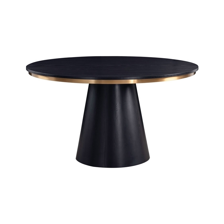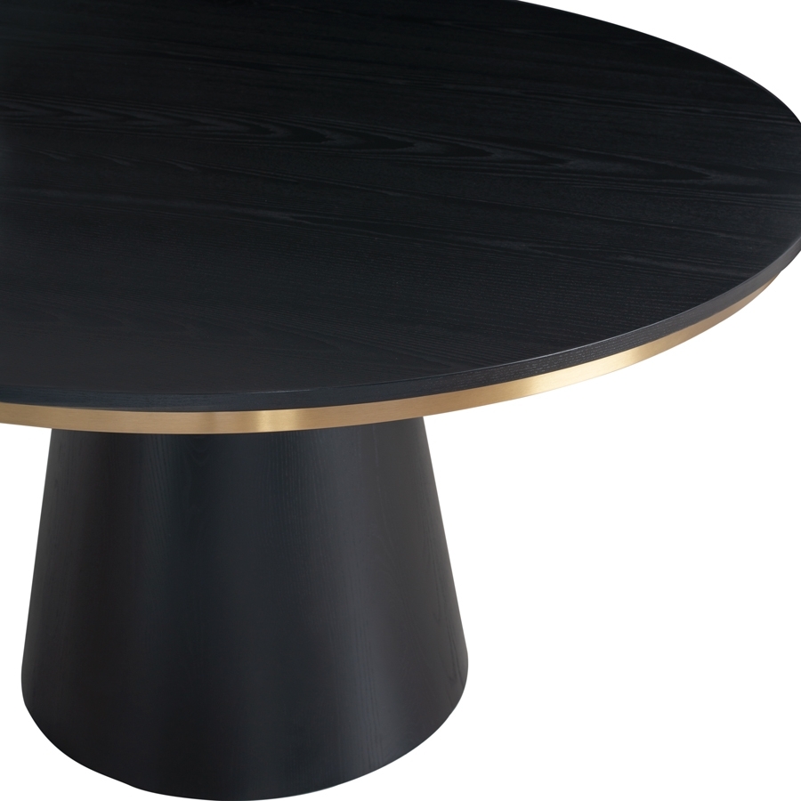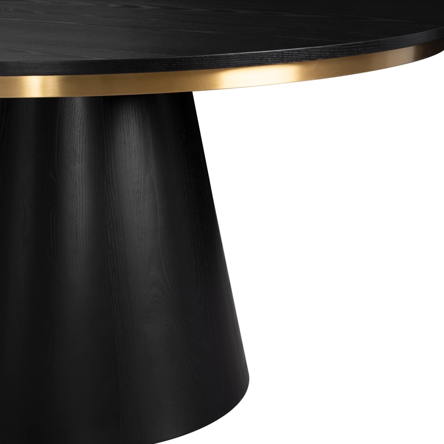 An impressive dining table that will seat up to six people Solid ash base Ash veneer top Matt black lacquer finish Brushed brass ring detail Simple assembly required