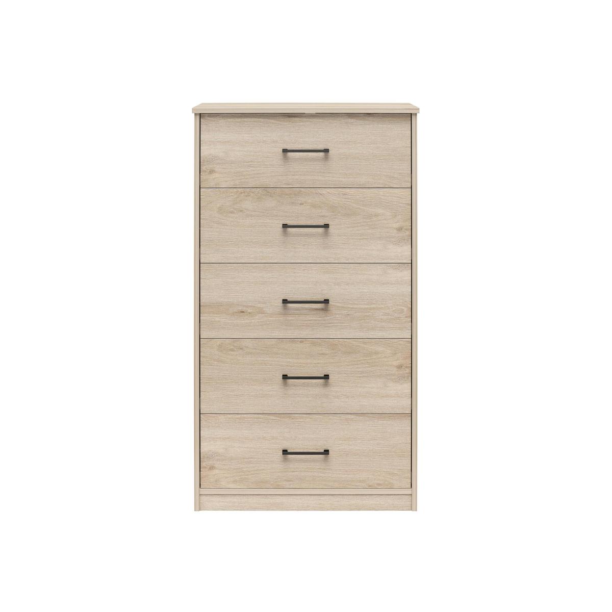 This five-drawer dresser is as simple to put together as it is sleek. Featuring a design that allows for quick and easy assembly by anyone, this piece gives you an elevated look without the hard work. Grooved wooden panels are designed to stay in place so you can effortlessly snap them together and then move on with your day. With clean lines and a timeless silhouette, this dresser boasts generously sized drawer pulls, and a lamination process ensures a consistent white finish throughout. Wide and substantial, this dresser features six spacious drawers that slide smoothly on a metal glide system. Add understated elegance to your bedroom with this casual transitional piece.