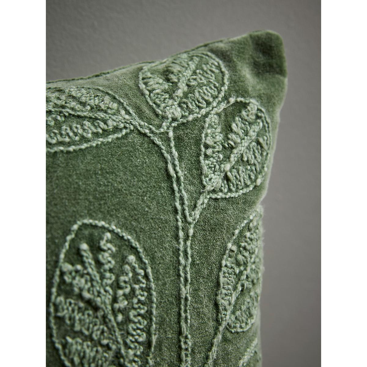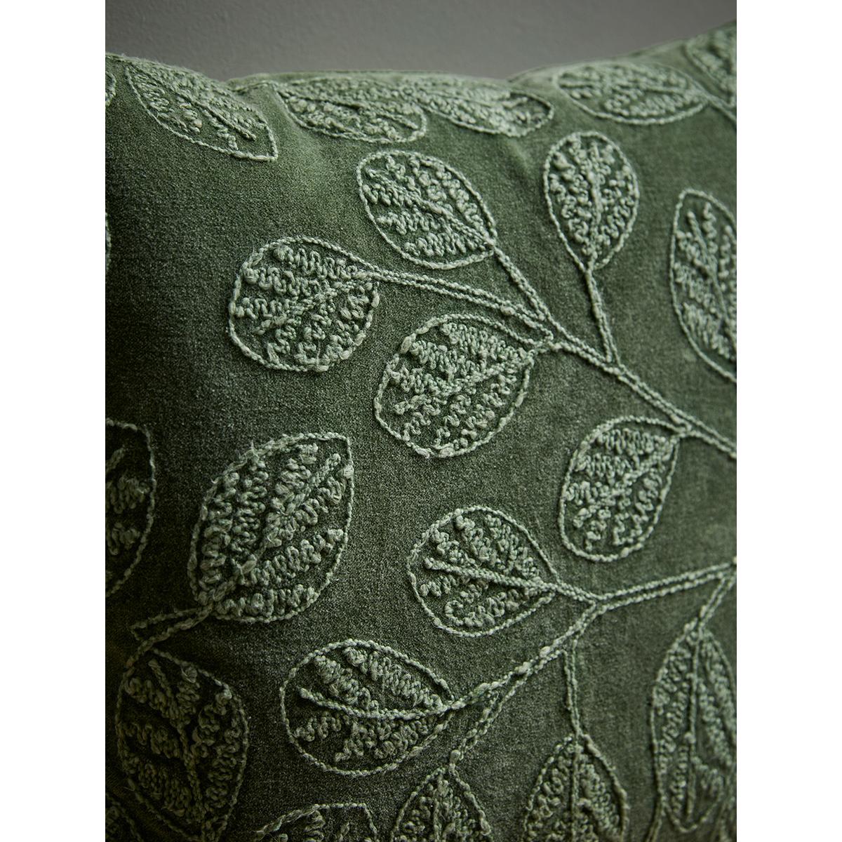 I love this cushion for its versatile and timeless design. The olive shade is a great way to introduce a subtle pop of colour without overwhelming a space. The embroidered leaf detail adds texture and a natural touch, making it easy to style in both contemporary and traditional interiors. It works particularly well with neutral tones, such as creams, greys, or even deeper greens, creating a cohesive look. Practical styling tips include pairing it with other textured cushions for a layered effect on a sofa or armchair, or using it to soften the edge of a leather or fabric seat. It's an adaptable piece that adds warmth and visual interest to any living space.