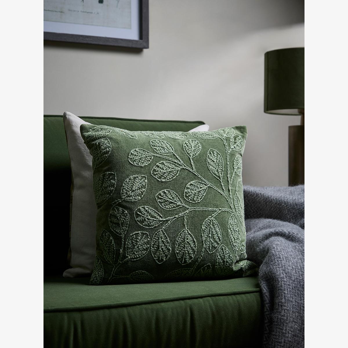 Crafted from a supersoft cotton with a plump feather-filled padding, our Briar cushion brings plenty of colour to your home without being too bold. With an olive based, a leafy pattern in a lighter green blooms across the cover, creating a cushion that is a comfortable as it is stylish.