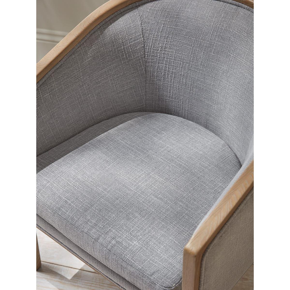 I’m a fan of the Briar chair for its neat scale and clean lines - the light oak frame and soft grey upholstery slot straight into Scandi, mid-century or contemporary schemes without overwhelming a room. Its curved back and slim arms make it an ideal extra seat in a living area or snug corner in a bedroom. For styling, position it beside a slender side table topped with a simple lamp or small stack of books to keep circulation clear. A textured cushion in a muted hue adds interest without competing, and placing it on a low-pile rug helps define its spot while keeping the overall look light and uncluttered.