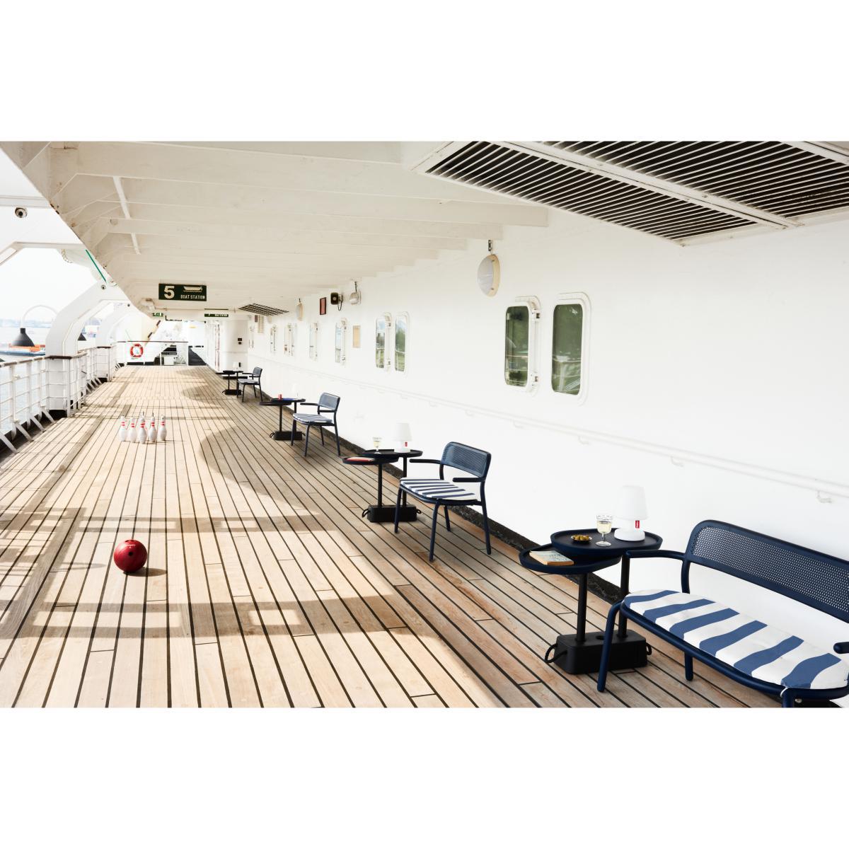 With its oversized construction brick style base, this table sports a relaxed and fun look. The very practical Brick side table folds to your every whim! It consists of a colourful top made from polyethylene (with a steel central part) perched on a solid steel legs. The legs easily fit into one of the three base holes: child's play! You can choose which hole to place the top depending on your requirements and décor whims. The top rotates to better serve you. The recycled polyethylene base can be weighed down with sand or water. It has two robust cord handles which allows you to move the table easily. This small travel side table will follow you everywhere at your whims, both inside and outdoors. Thanks to its swerved top, the base easily slips under a sofa, a bed or a deckchair in the garden. Its simple geometry gives it a unique aura. You have the option of adding an additional top to fit into one of the holes of the base (extra Brick's buddy top sold separately). This extra top is higher than the top included with the Brick table: this allows the two tops to overlap.