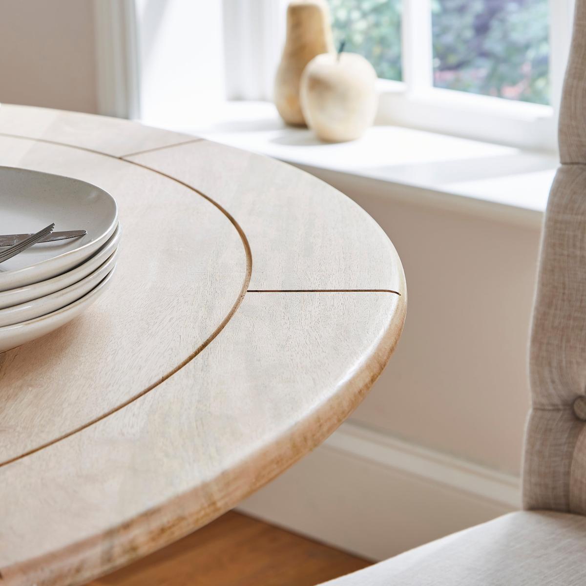Bridget 4 Seater Round Dining Table, Whitewash Mango Wood Light Wood