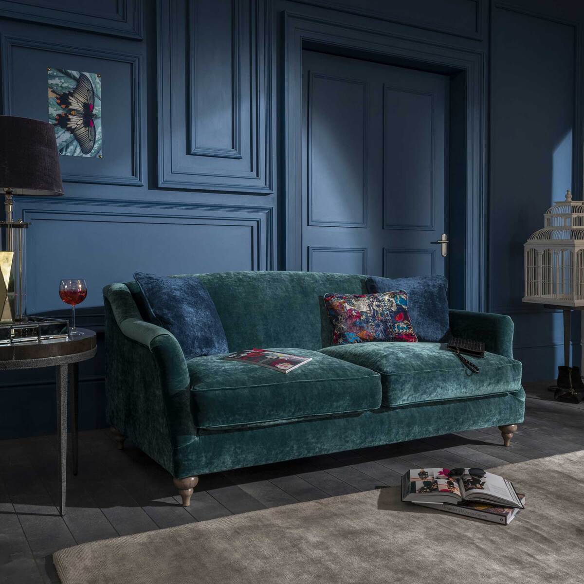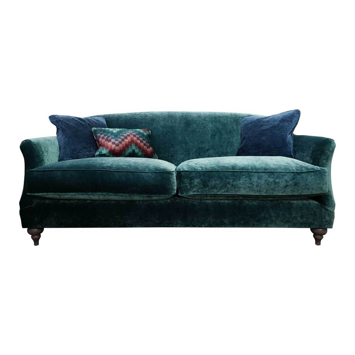 Dressed in sumptuously shimmering fabric and featuring delicately curved arms, the Bridget sofa is a real beauty. Elegant wooden feet give a nod to traditional style, while the range of fabric colours on offer ensures there’s something for every modern home. Luxurious comfort in a timeless package. Sofa is shown in Eternity Turquiose with Eternity Sapphire scatters, which aren't included in the price but can be purchased separately.