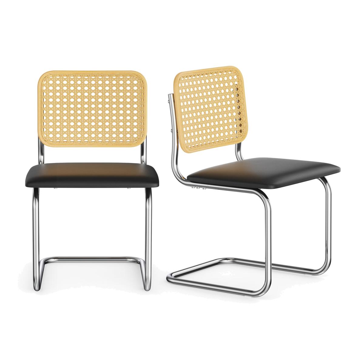 Taking inspiration from the iconic Cesca chair, infuse retro style into your home with the Von Haus Bridgewater dining chairs. An icon of mid-century modern design, the cantilever shape exudes timeless appeal, bringing presence to any table. From daily meals to sophisticated soirees, dine in luxury. Upgrade your next dinner party with our retro dining chairs. The faux leather seat and sleek chrome frame bring a touch of luxury, effortlessly elevating the bohemian-inspired rattan backrest. Providing both style and substance, the swooping one-piece frame boasts a generous 110kg capacity. Characterised by their subtle curves, rattan weave, and metal tubing, use these cantilever chairs as a statement piece in any room, whether it's spare seating for guests or a stylish dressing table chair. Please Note: This large item is in multiple packages which may arrive separately. Check courier tracking for full details.