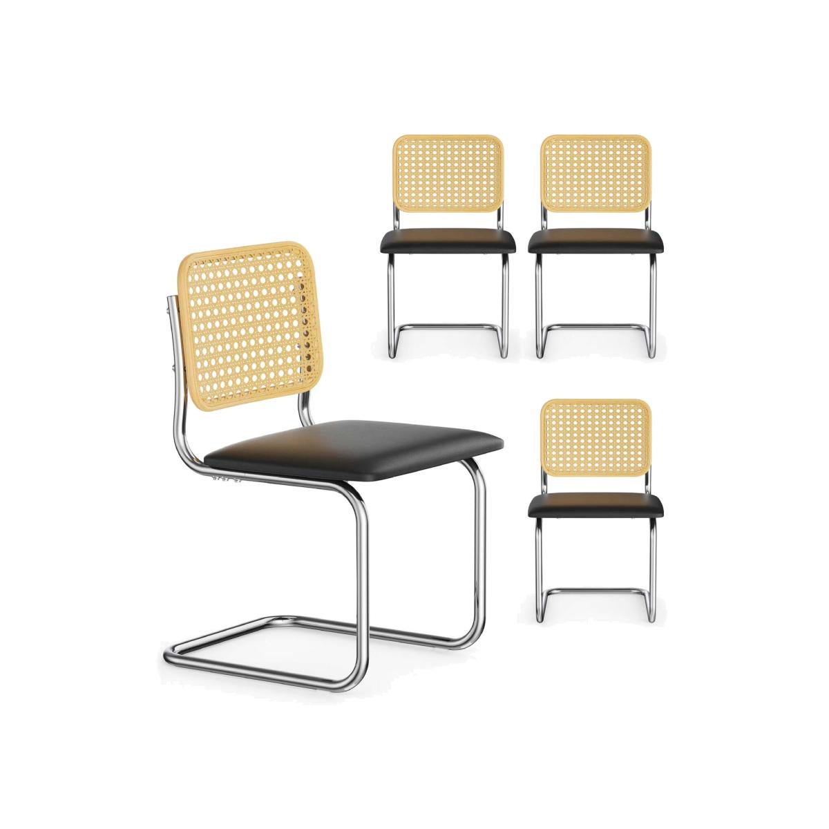 Taking inspiration from the iconic Cesca chair, infuse retro style into your home with the Von Haus Bridgewater dining chairs. An icon of mid-century modern design, the cantilever shape exudes timeless appeal, bringing presence to any table. From daily meals to sophisticated soirees, dine in luxury. Upgrade your next dinner party with our retro dining chairs. The faux leather seat and sleek chrome frame bring a touch of luxury, effortlessly elevating the bohemian-inspired rattan backrest. Providing both style and substance, the swooping one-piece frame boasts a generous 110kg capacity. Characterised by their subtle curves, rattan weave, and metal tubing, use these cantilever chairs as a statement piece in any room, whether it's spare seating for guests or a stylish dressing table chair. Please Note: This large item is in multiple packages which may arrive separately. Check courier tracking for full details.