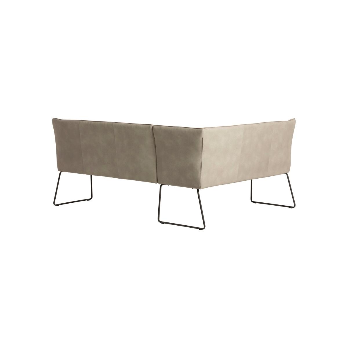 Discover the perfect blend of vintage charm and modern elegance with the Bridgford Light Grey Faux Leather Right Hand Facing Corner Bench. Upholstered in silky-smooth faux leather, it offers a luxe look and feel that invites you to sit back and stay awhile. The sturdy steel frame, finished in a beautifully weathered antique patina, adds timeless character and bold sophistication. Every detail - from the refined curves to the rich contrast of textures - exudes high-end style. Whether placed in a dining nook or open-plan space, this bench is it just furniture - it's a statement of taste, comfort, and lasting beauty
